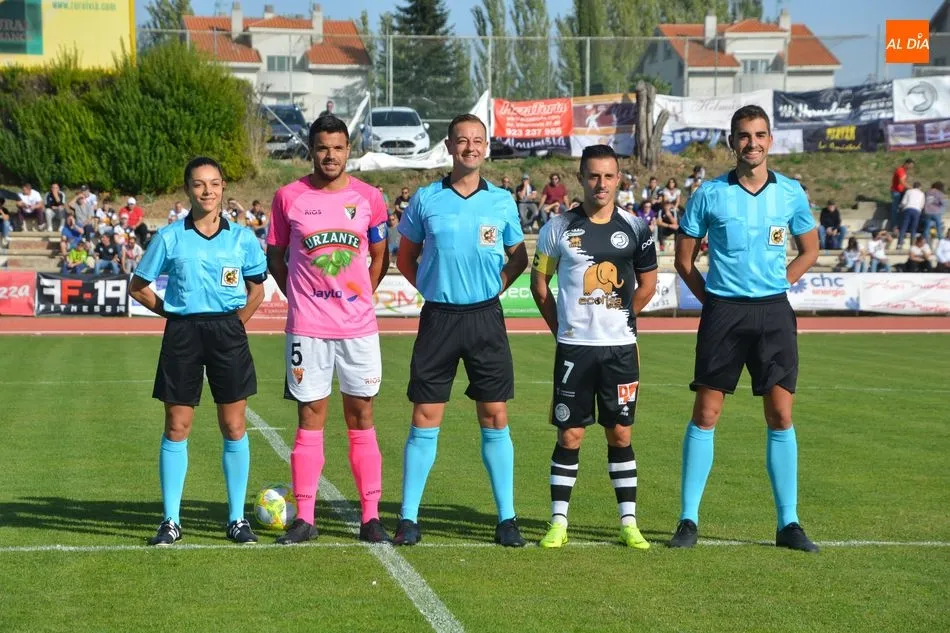 Sobre la alineación, Roberto Aguirre, que recibió un placa conmemorativa de manos del club por cumplir 500 partidos en Segunda B, decidió volver al 4-4-2 y apostó por Carlos de la Nava, que regresó tras lesión, como acompañante de David Grande, mientras que Matthieu, el mejor del equipo de Las Pistas en el derbi contra el Salamanca UDS, partió como extremo zurdo. Por su parte, el portero Pagola, ex del Guijuelo y la UDS, fue titular con el Tudelano, una situación que no vivió David Lázaro, último goleador del bando del Helmántico en 2013, al ser suplente y salir en la segunda parte.
