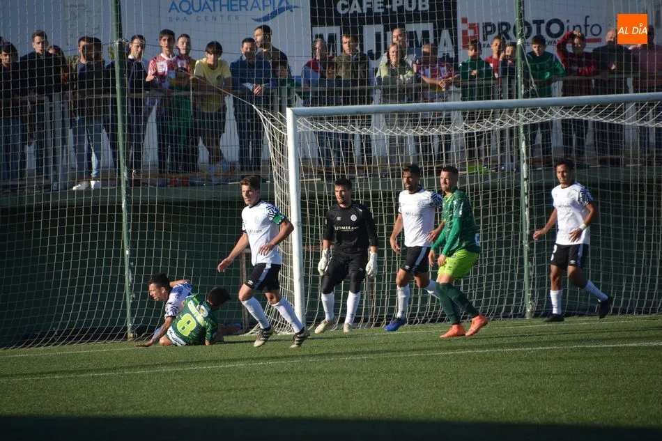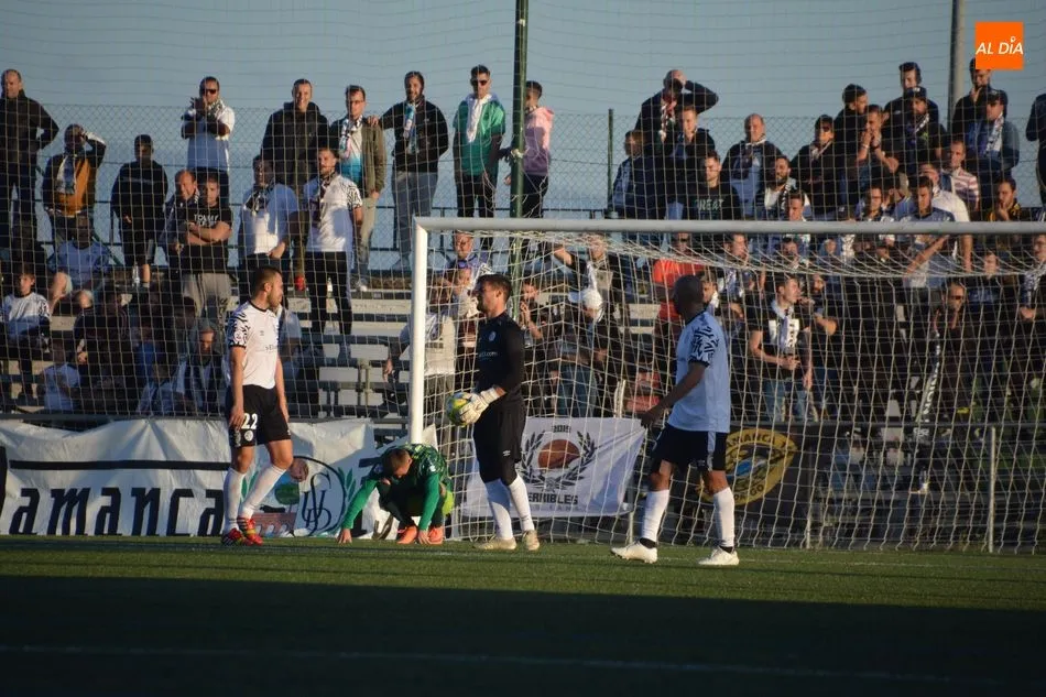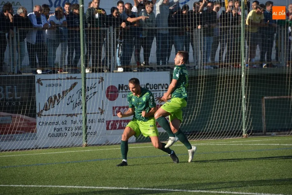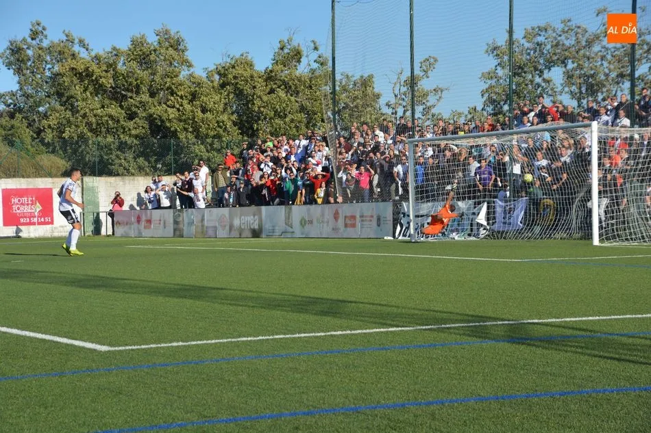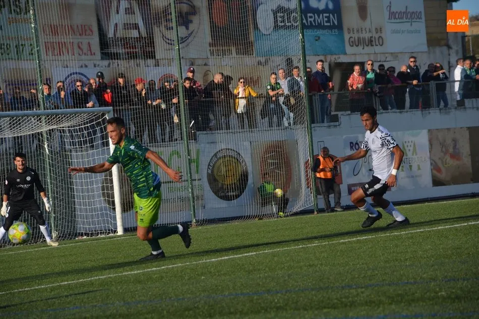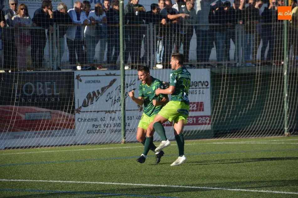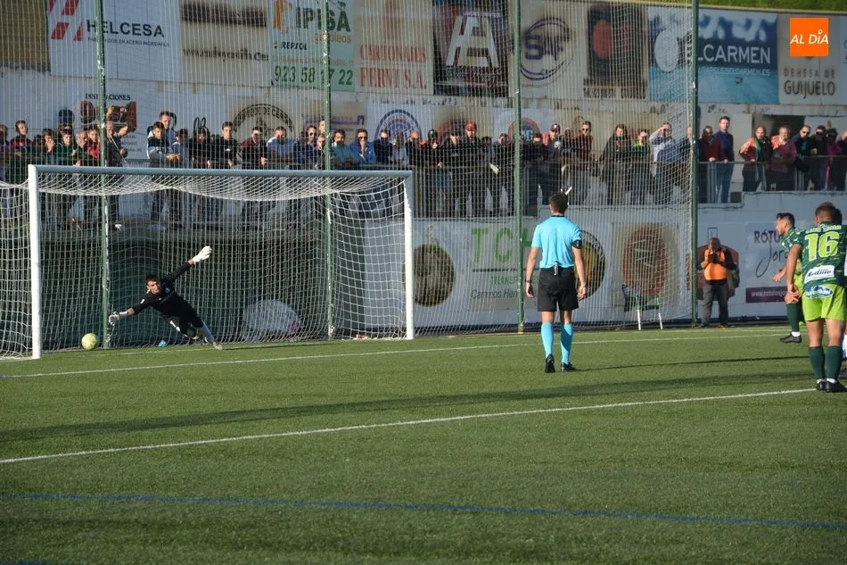 Por su parte, el Guijuelo aprovechó el bajón del Salamanca UDS y dio un paso al frente. Las ocasiones se sucedieron sobre el marco defendido por Dani Sotres y un error de Antonio Amaro dentro del área desembocó en la segunda pena máxima de la tarde por cometer mano. Espina disparó desde los 11 metros y Sotres estuvo a un palmo de evitar el 1-1. Todo parecía abocado al descanso al empate, pero Martín Galván, que quedó tocado por la acción, se encargó de hacer de ?9? y con la puntera superó a Vallejo en un centro lateral de Crespo.