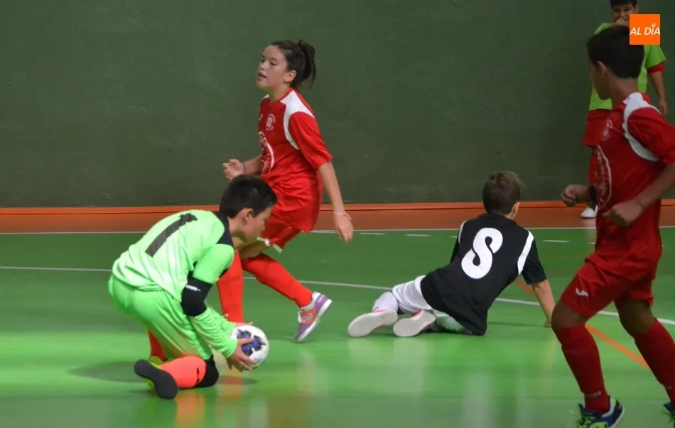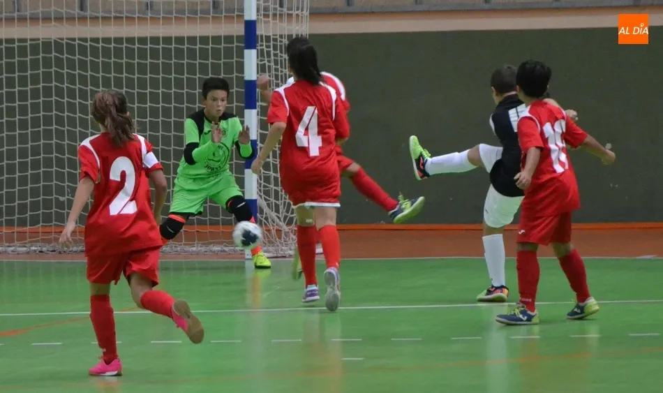 Según avanzaron los minutos, el Alevín A fue ganando espacios, siendo quién tuvo las primeras grandes ocasiones de la mañana, que desbarató el portero del Alevín B, José Antonio, con dos grandes intervenciones en sendas jugadas (en la segunda, el balón siguió vivo tras su intervención, acabando por despejarlo Claudia en la línea de gol).