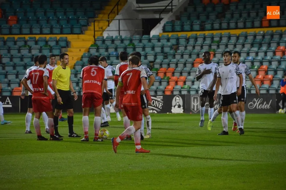 La contienda empezó muy dinámica entre ambos equipos, aunque buena parte de los espectadores que acudieron al Helmántico se perdieron el inicio del choque por las largas colas que hubo para acceder al campo. Mientras, el Móstoles se adelantó en el marcador a las primeras de cambio con un gol de Portilla de vaselina ante una salida a medias de Andrés Sánchez.