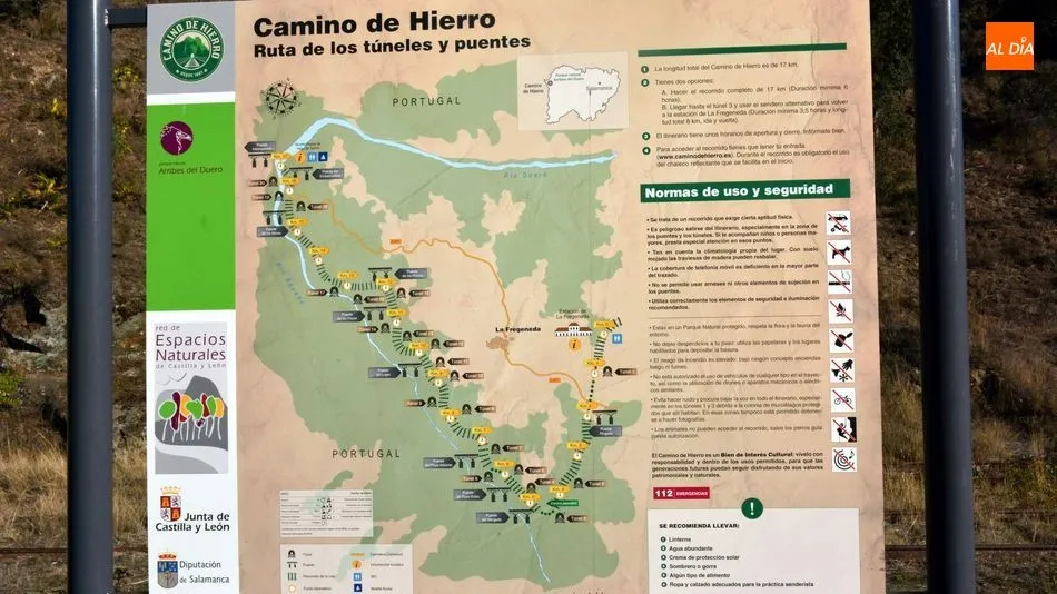 La Diputación de Salamanca ha invertido más de un millón de euros, 1.300.000 euros concretamente, en la recuperación del Camino de Hierro, la Ruta de los Túneles y los Puentes, que se inicia en la estación de Valdenoguera y finaliza 17 kilómetros más abajo, en Vega Terrón, último tramo de la línea férrea La Fuente de San Esteban-Barca d´Alva y que en el año 2.000 era declarada BIC con categoría de Monumento. Adif, titular de esta línea, le ha cedido a La Salina los 17 kilómetros exclusivamente para su uso peatonal, y la Diputación ha decidido que el proyecto Camino de Hierro sea gestionado por una empresa particular. ¿Qué empresa? A estas alturas aún se desconoce.