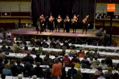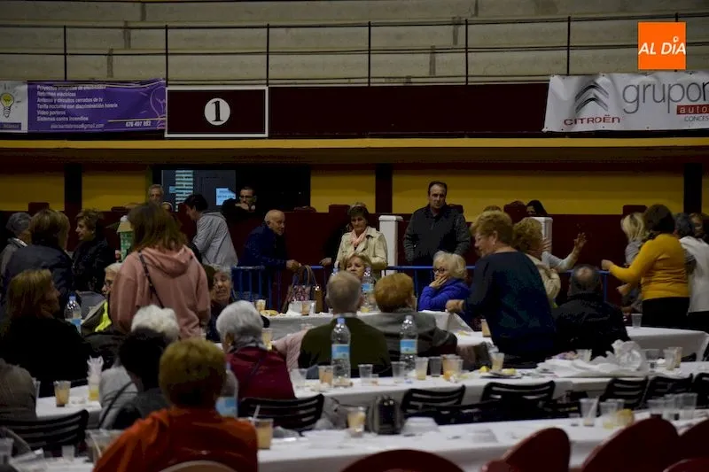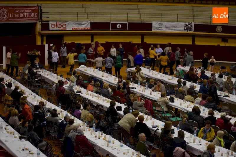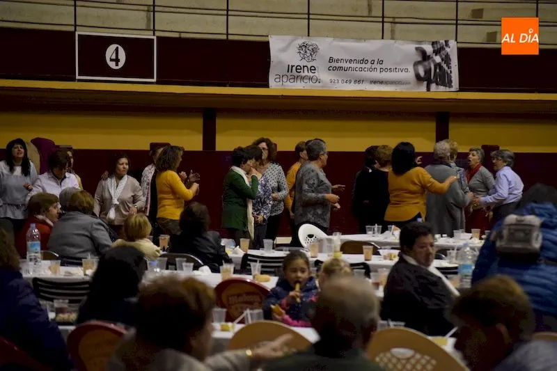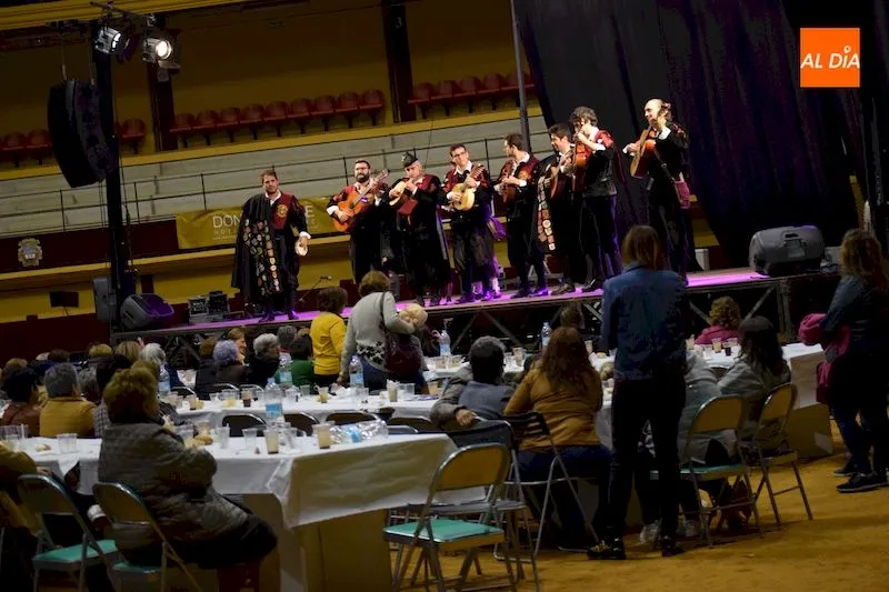 La comida se desarrolló en la Plaza de Toros al mediodía y, durante la tarde, las mujeres disfrutaron con música, teatro y bingo antes de la actuación de la tuna universitaria.