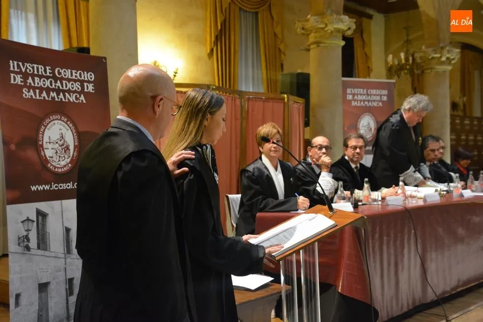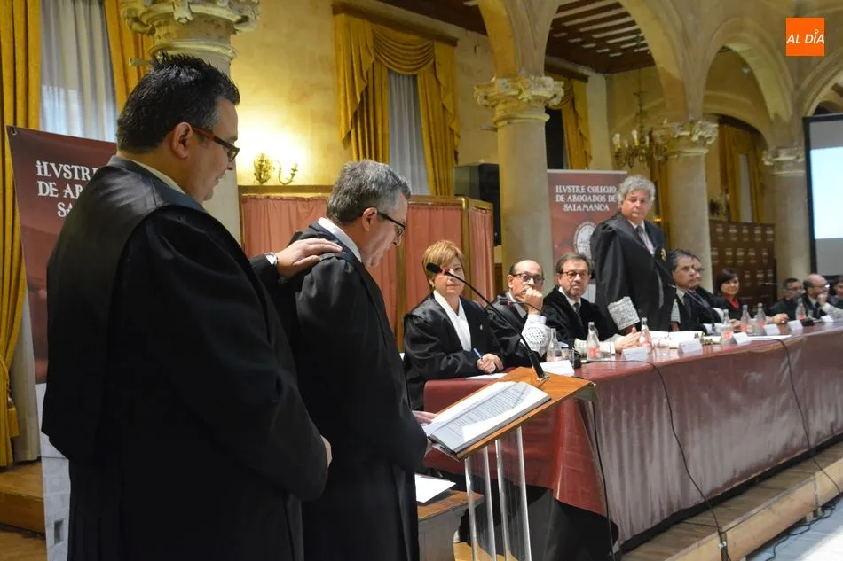 El Colegio de Abogados continúa celebrando sus fiestas patronales en honor a Santa Teresa y este viernes han tenido lugar los actos destacados de su programa. Tras la misa de esta mañana, el Casino de Salamanca ha acogido por la tarde la jura de los 15 nuevos colegiados y la entrega de medallas a los compañeros que cumplen 25 años de ejercicio profesional.