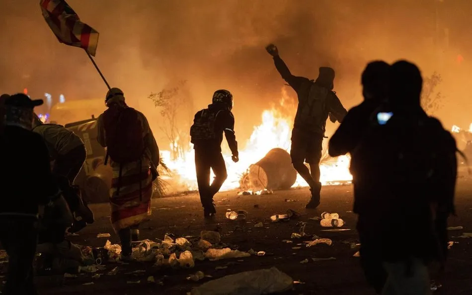 Un agente de la Policía Nacional se ha desplomado y ha quedado inconsciente por el lanzamiento de objetos por parte de radicales en la Vía Laietana de Barcelona. Tuvo que ser evacuado por sus compañeros en otra noche marcada por graves disturbios y numerosas barricadas en el centro de Barcelona.