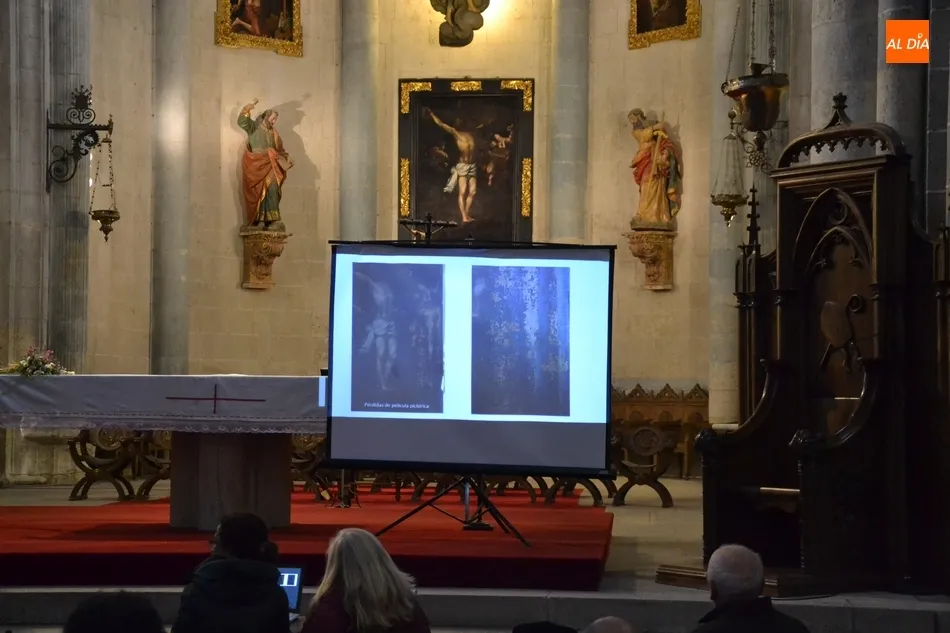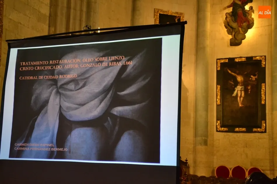 La Catedral de Santa María de Ciudad Rodrigo acogió en la tarde del domingo un acto en el que se explicó el proceso de restauración del que ha sido objeto en los últimos tiempos el cuadro que luce actualmente en el altar mayor de la Seo, un óleo sobre lienzo titulado Cristo en la Cruz, perteneciente a Gonzalus de Rivas, y fechado en 1661.