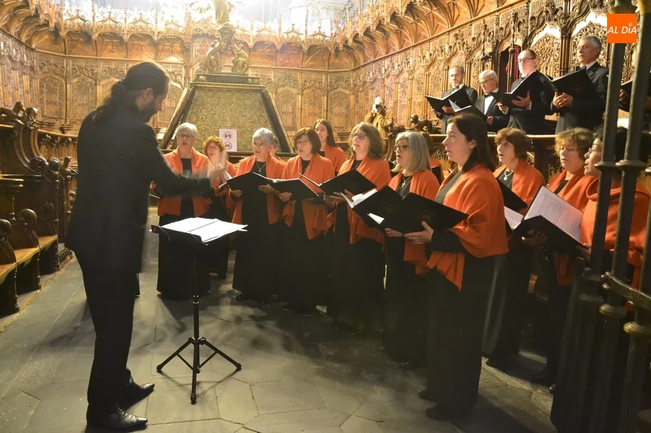 La Coral realizó sus cánticos desde el Coro de Rodrigo Alemán durante la eucaristía, que fue presidida por el presidente del Cabildo Catedralicio, Ángel Martín Carballo. Esta misa tuvo un toque especial adicional, ya que como remarcó Ángel Martín Carballo durante su homilía, la Iglesia Católica está celebrando durante esta jornada dominical el emblemático Domingo Mundial de las Misiones (Domund), yendo a parar a las Obras Misionales Pontificias lo recaudado con la colecta.