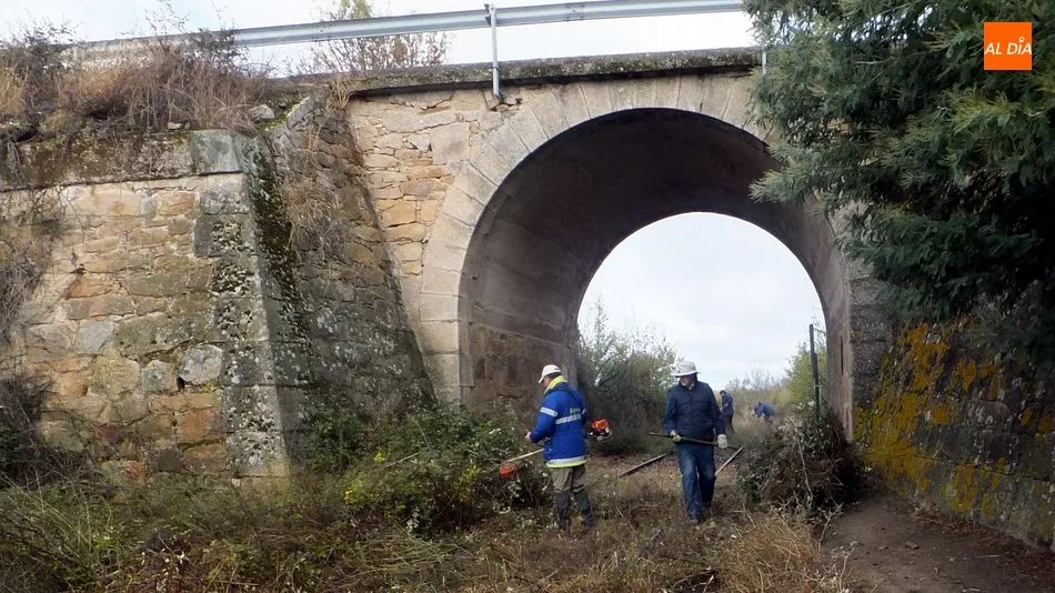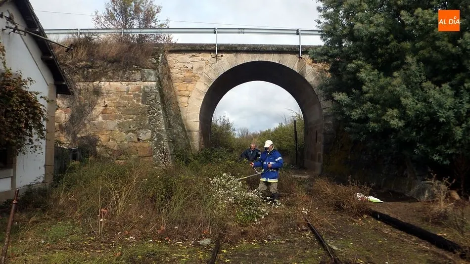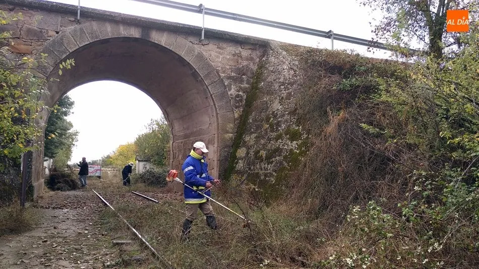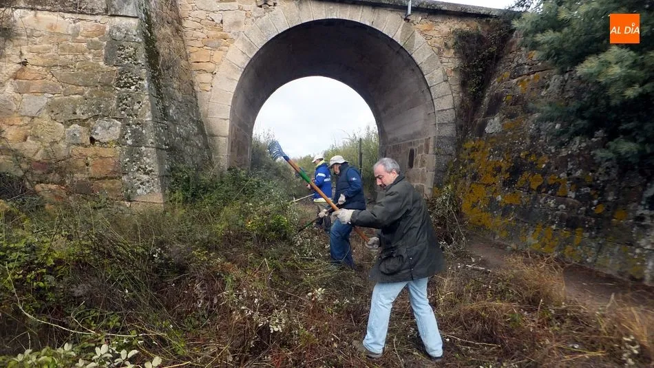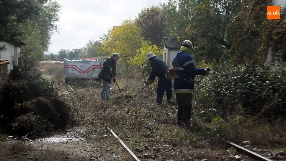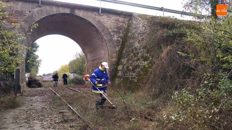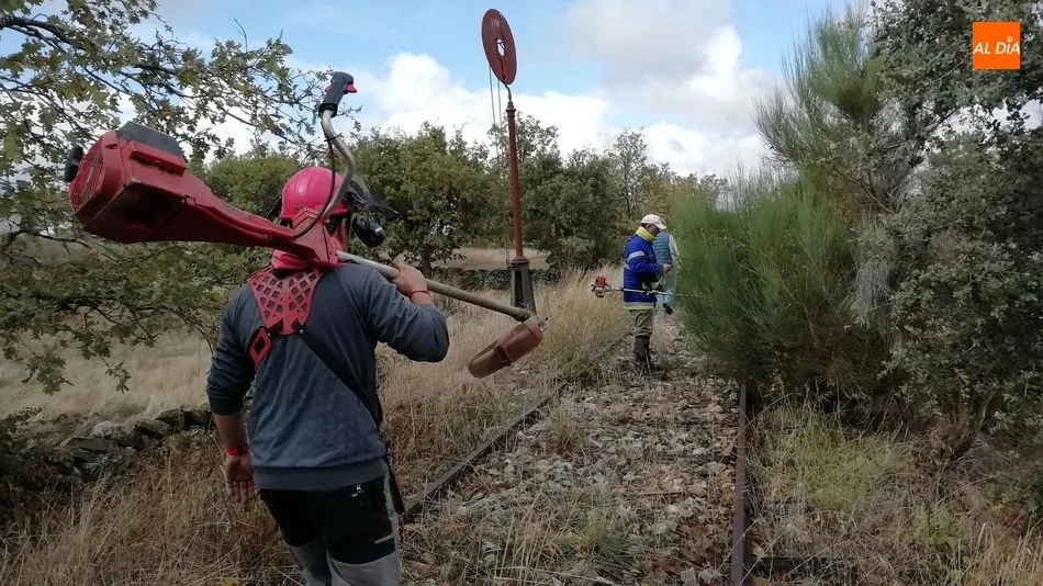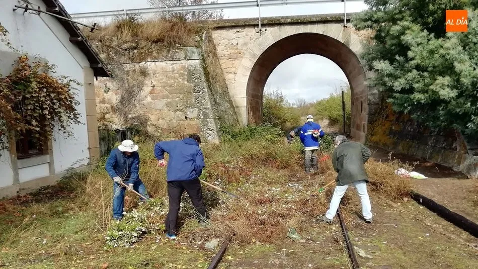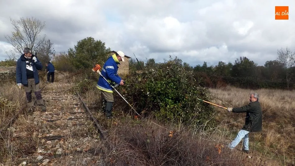 Los voluntarios retiraron la maleza y liberaron varios pasos a nivel a lo largo de 4 kilómetros de la vía La Fuente de San Esteban-La Fregeneda- Barca d´Alva