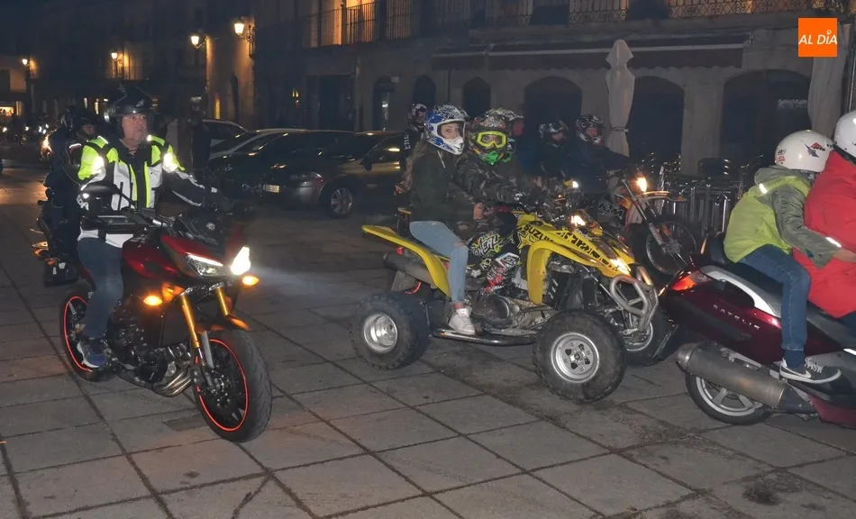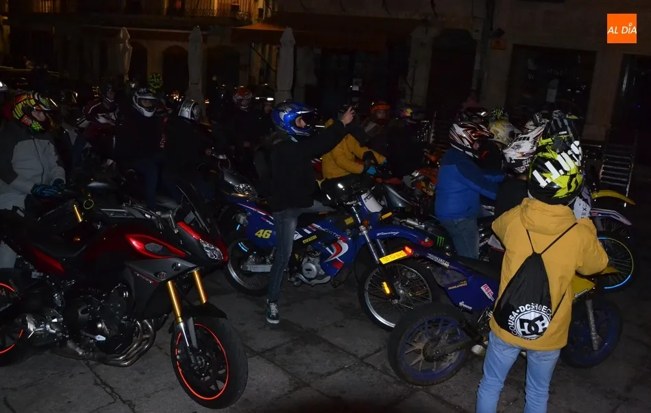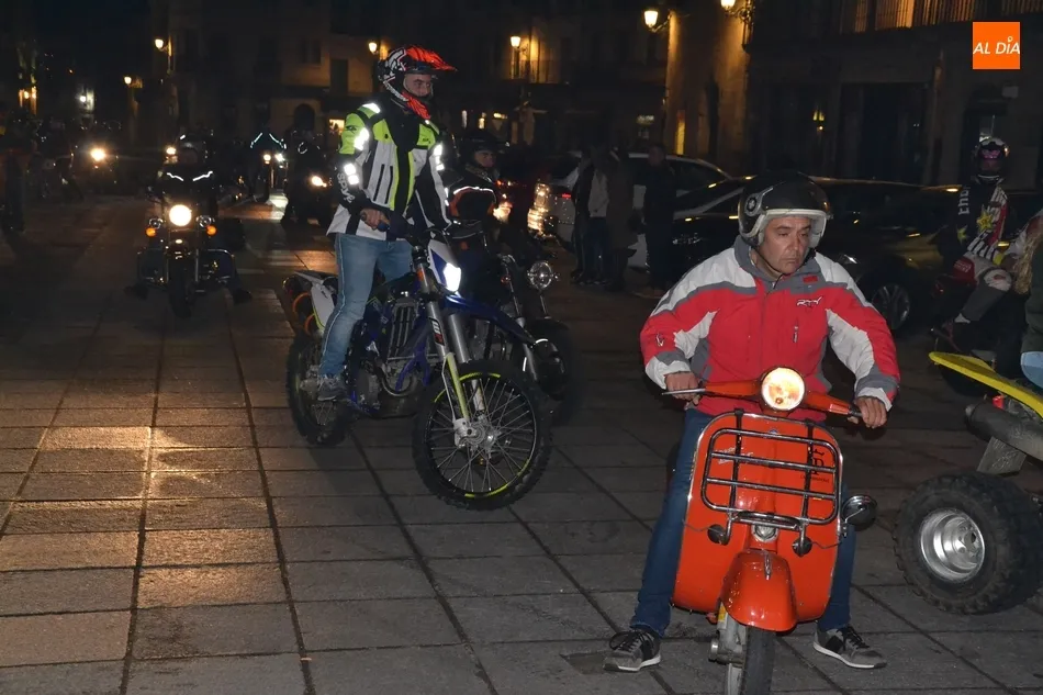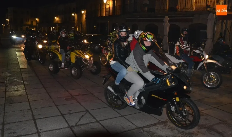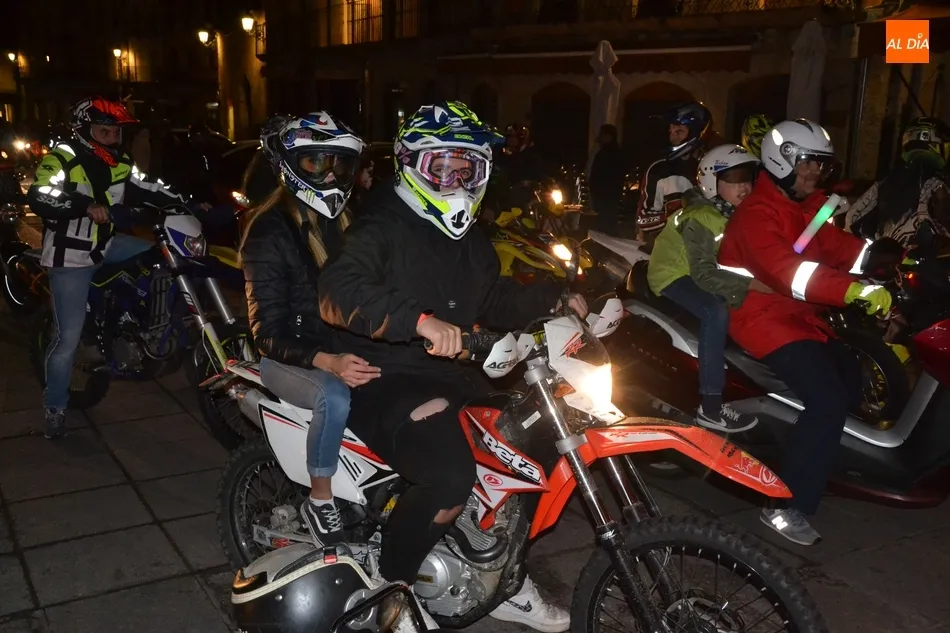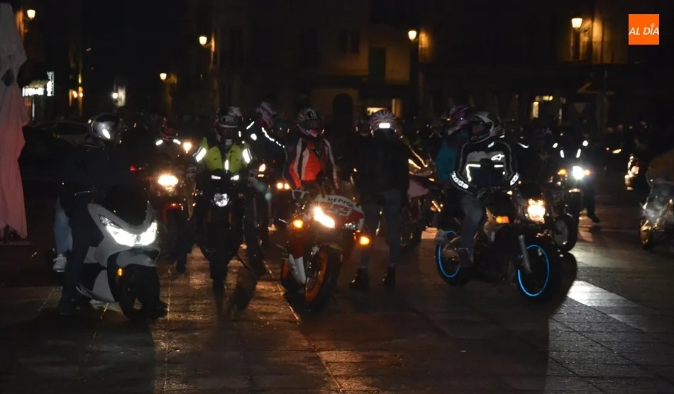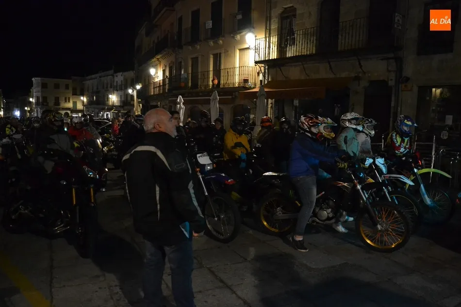 El punto de arranque de la ruta fue el Centro Receptor de Visitantes, en la Avenida de Sefarad (curiosamente, justo en el momento de la salida se apagó la iluminación artística de la Catedral y Cerralbo, lo que ?estropeó? el fondo). Allí se dieron cita alrededor de 90 motos, que realizaron un trayecto por la calle Santa Clara, Tres Columnas, Avenida de Salamanca, El Cruce, Avenida de Portugal, Clemente Velasco, Puente Mayor, Avenida de la Concha, calle Iberia, Avenida Conde de Foxá, Glorieta del Árbol Gordo, Avenida de España, Avenida de Yurramendi, Cardenal Pacheco y Sánchez Arjona para alcanzar la Plaza Mayor.
