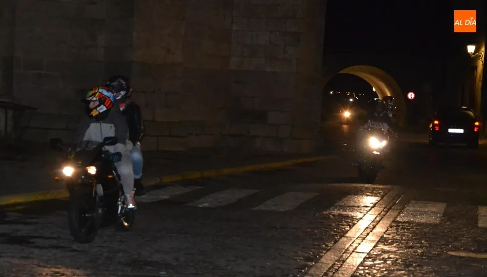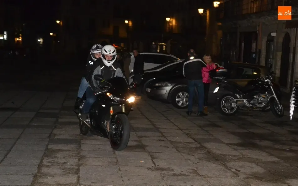 Sin respiro, enseguida se empezaron a mover las motos para abandonar el centro histórico por la Rúa del Sol. A partir de ahí ya se desató la ?anarquía? entre los moteros, que en principio iban a ir todos a aparcar a la Plazuela de Herrasti, pero finalmente cada uno se encaminó a un lugar. Hay que apuntar que, tras un día de bastante lluvia, la noche se quedó bastante tranquila en el plano meteorológico en Ciudad Rodrigo, con lo cual hubo unos cuantos mirobrigenses que salieron a la calle a ver el paso de los moteros.