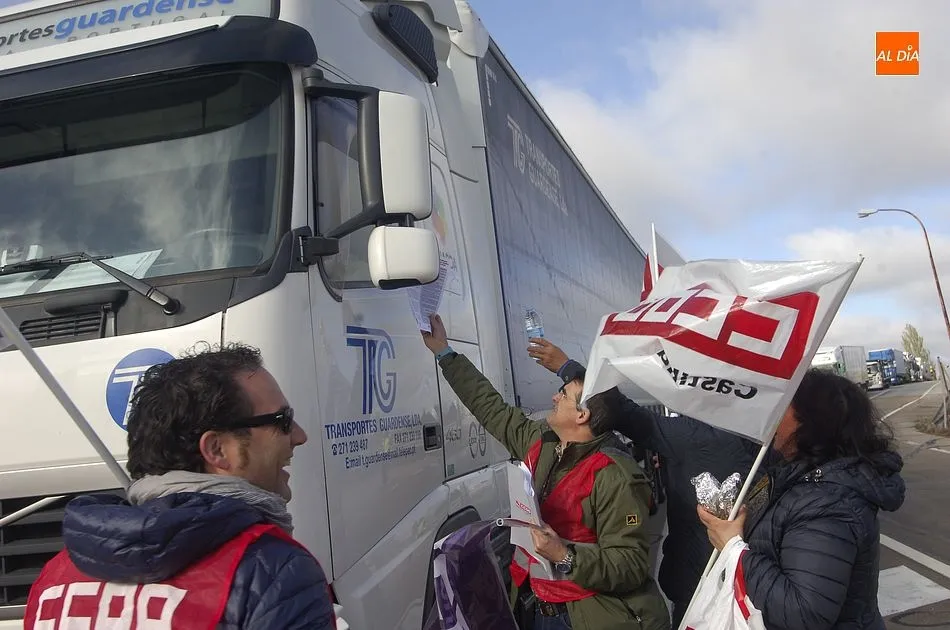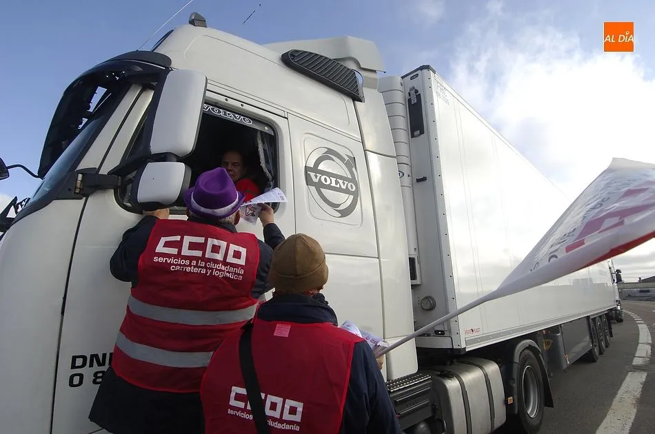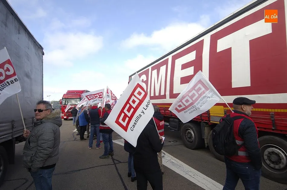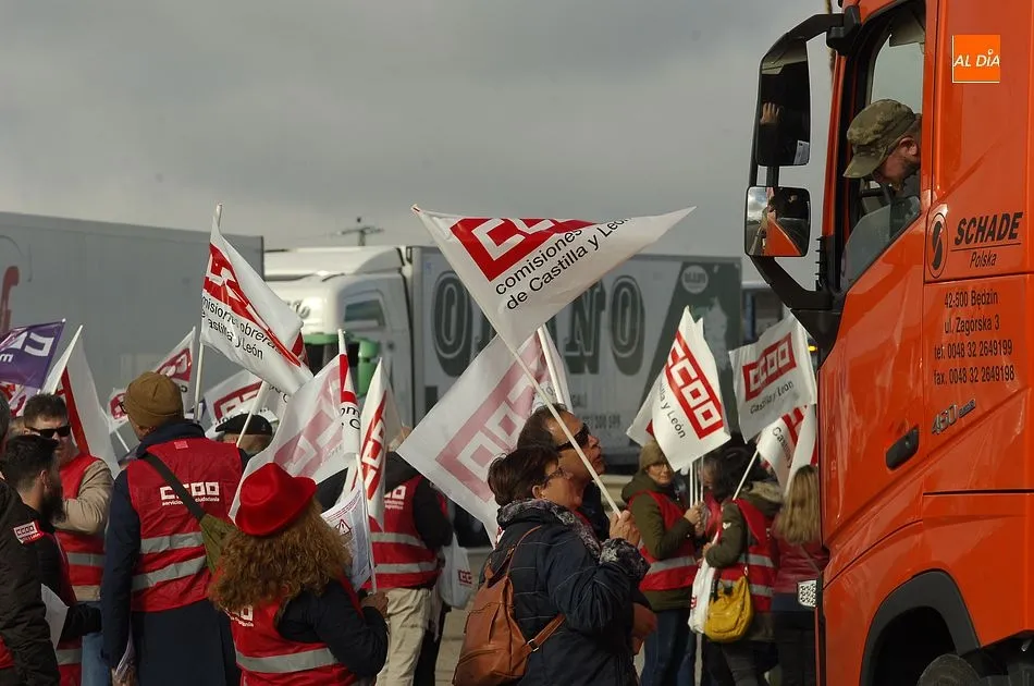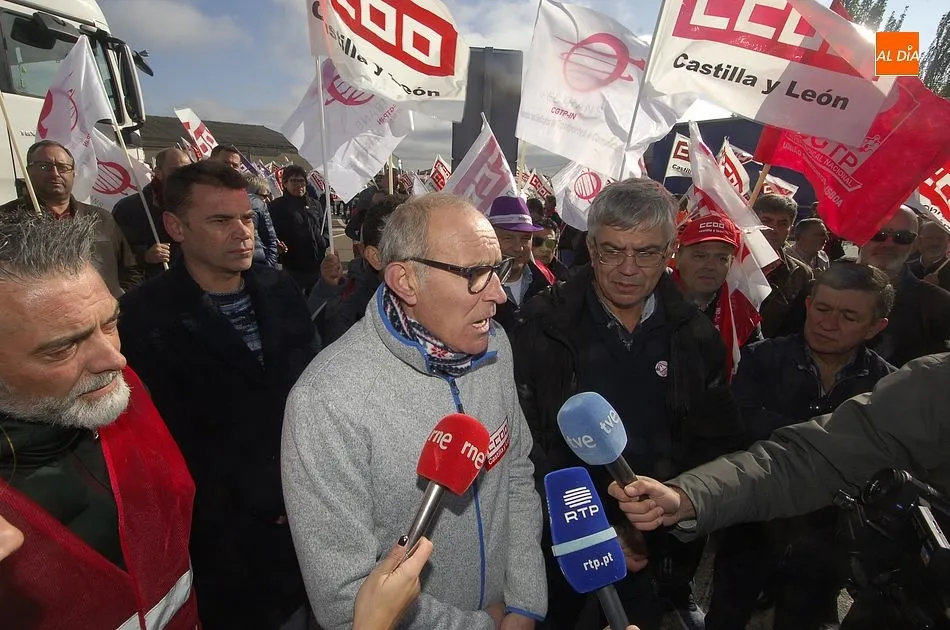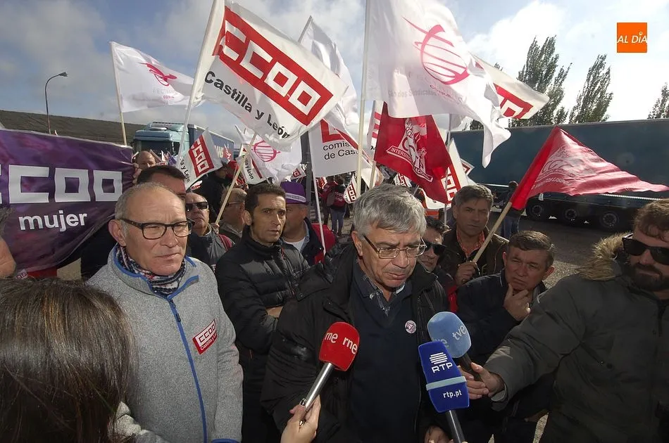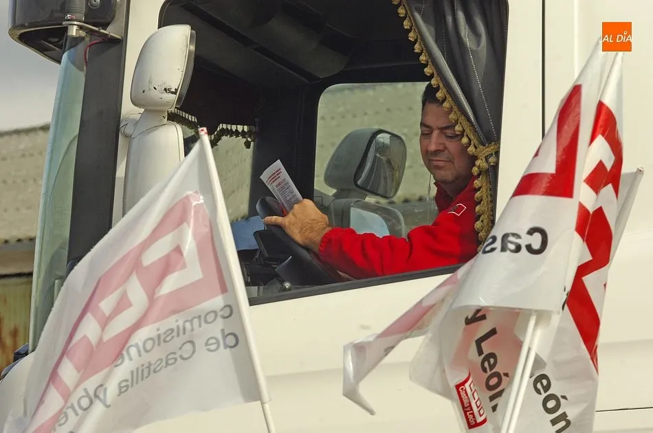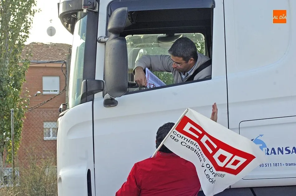 Entre los responsables de Comisiones Obreras presentes en la protesta estuvo el secretario general de FSC-CCOO CyL, Carlos López, quién explicó a los medios de comunicación que actualmente tienen tres frentes de reivindicación abiertos, empezando por la Unión Europea, donde ?hemos conseguido frenar? un cambio de normativa en tiempos de conducción y descanso de los conductores que hubiera supuesto una ?regresión de las condiciones de trabajo de los conductores profesionales?.