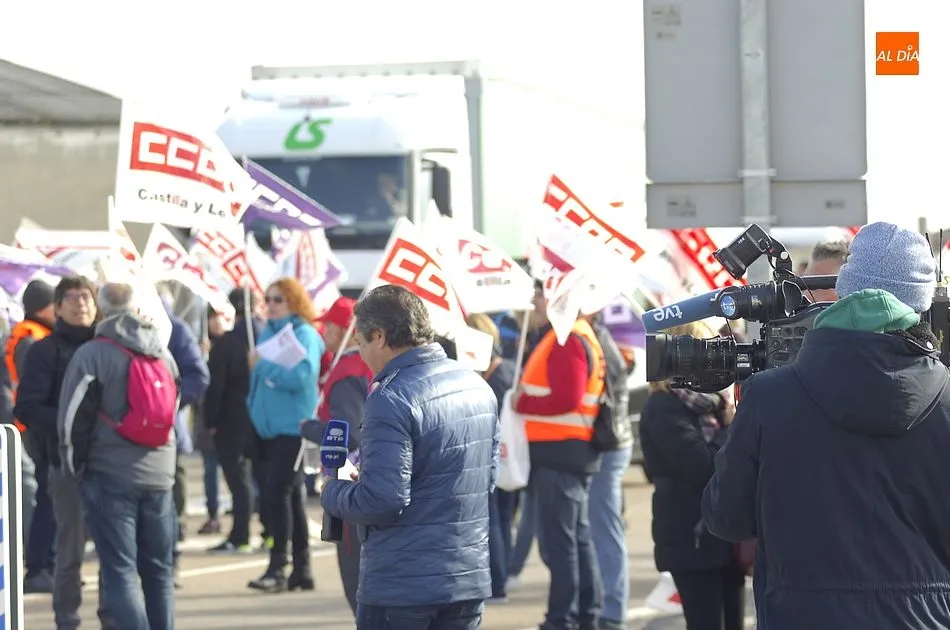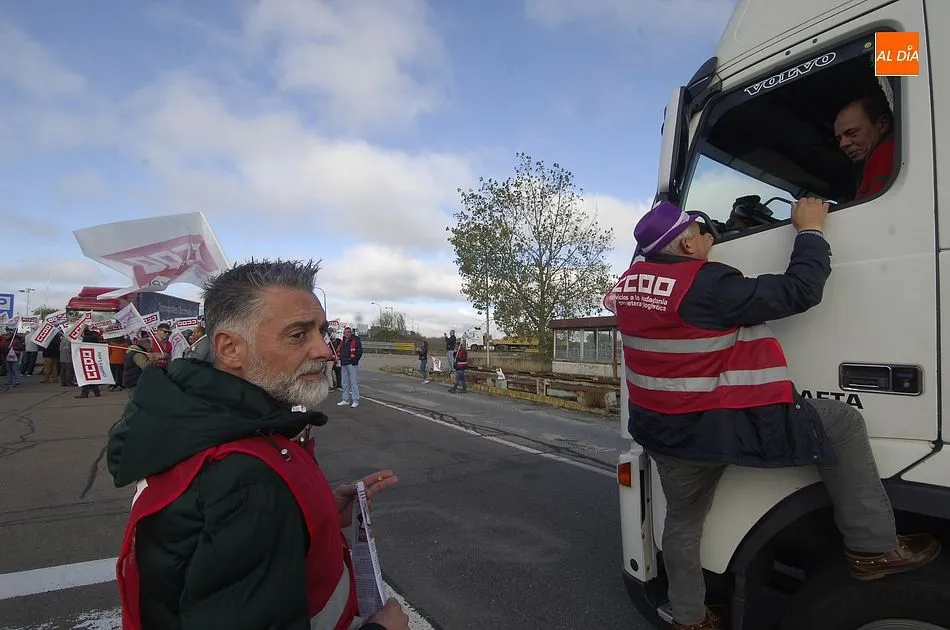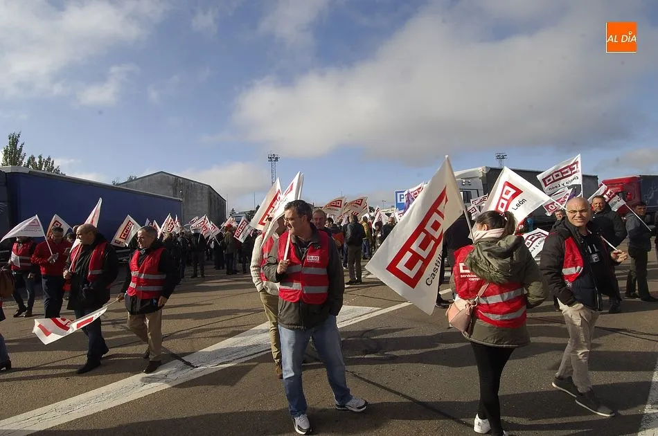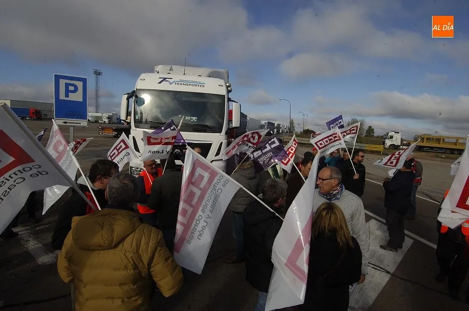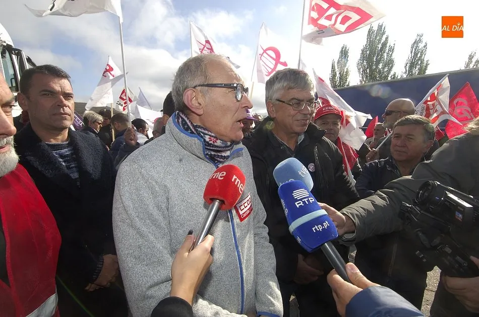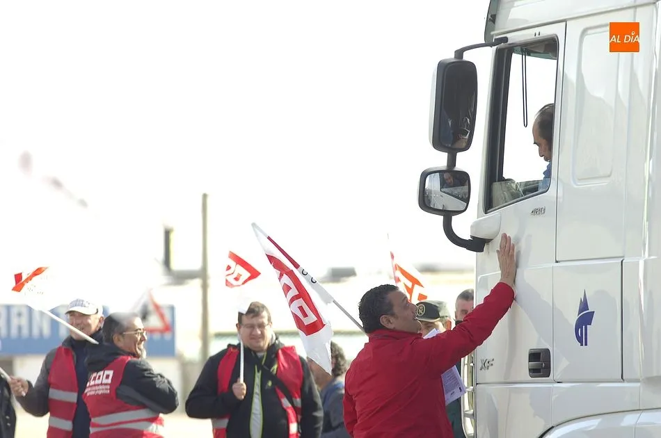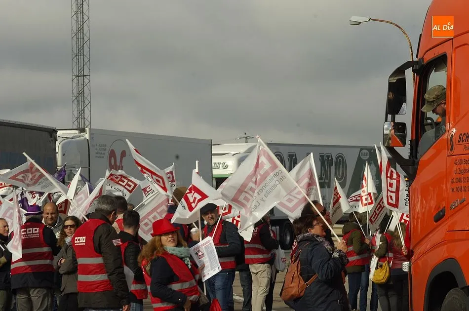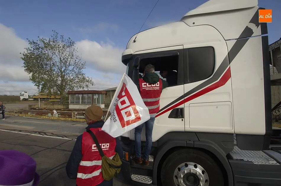 Entre los responsables de Comisiones Obreras presentes en la protesta estuvo el secretario general de FSC-CCOO CyL, Carlos López, quién explicó a los medios de comunicación que actualmente tienen tres frentes de reivindicación abiertos, empezando por la Unión Europea, donde ?hemos conseguido frenar? un cambio de normativa en tiempos de conducción y descanso de los conductores que hubiera supuesto una ?regresión de las condiciones de trabajo de los conductores profesionales?.