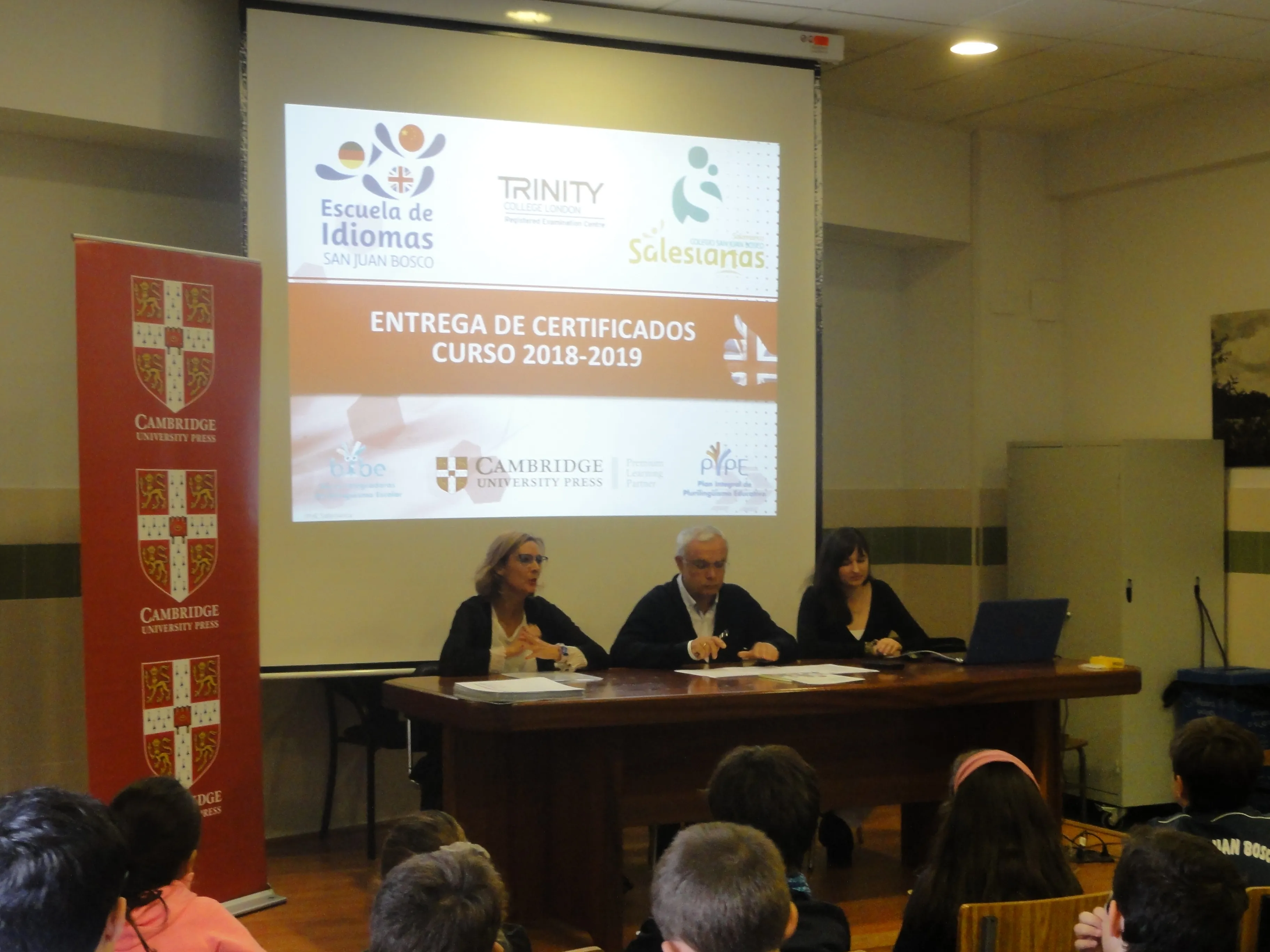 El Colegio San Juan Bosco de Salamanca ha entregado entregado esta mañana los certificados de University of Cambridge y de Trinity College London a los alumnos que el pasado curso se presentaron al examen oficial y consiguieron superarlo.