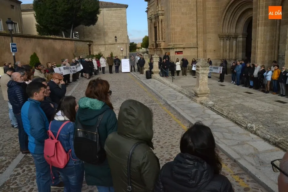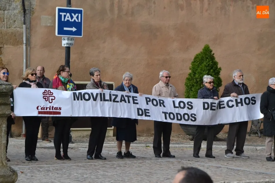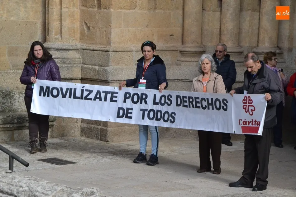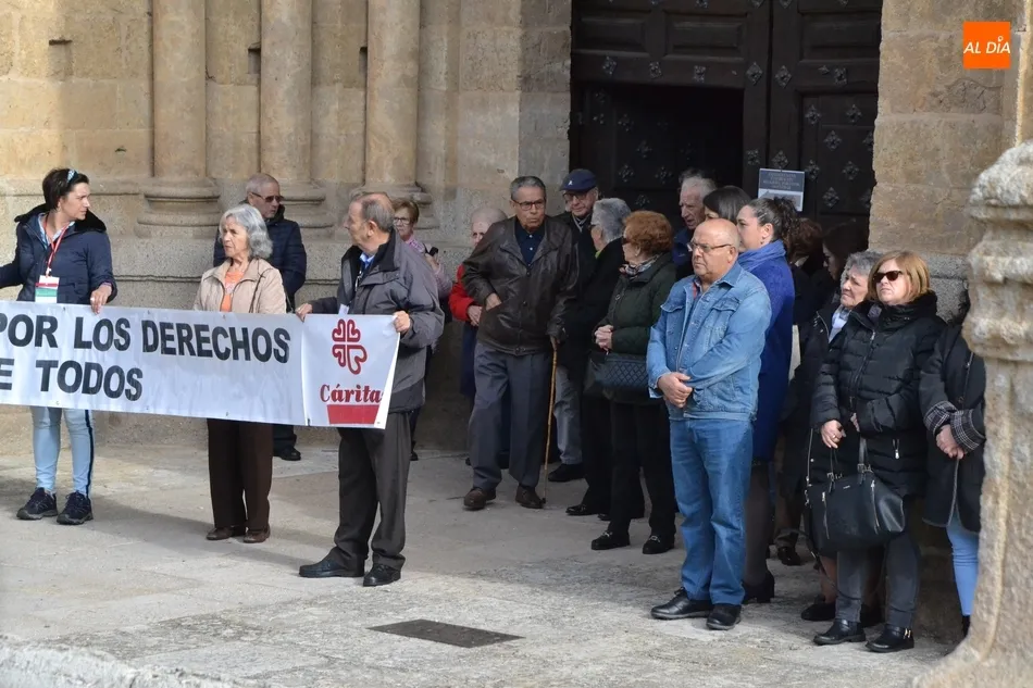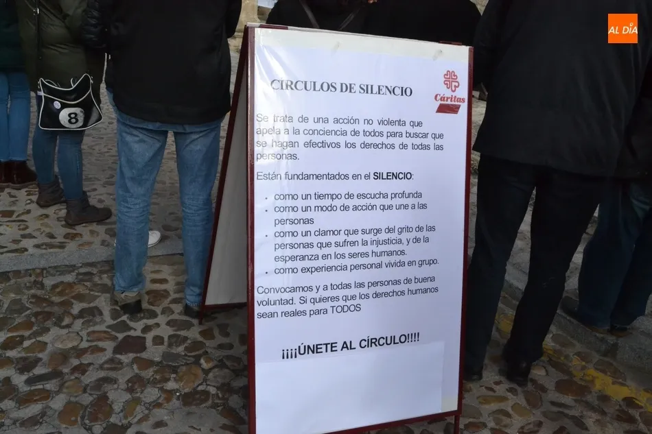 La recta final de las Jornadas Regionales de Reflexión de Cáritas ?que llegaron a su conclusión a la hora de comer del martes- incluyó la realización a media mañana junto a la Puerta de las Cadenas de la Catedral de Santa María de un ?Círculo del Silencio?, al que se sumaron unos cuantos mirobrigenses más, así como algunos turistas, hasta totalizar algo más de un centenar de personas.