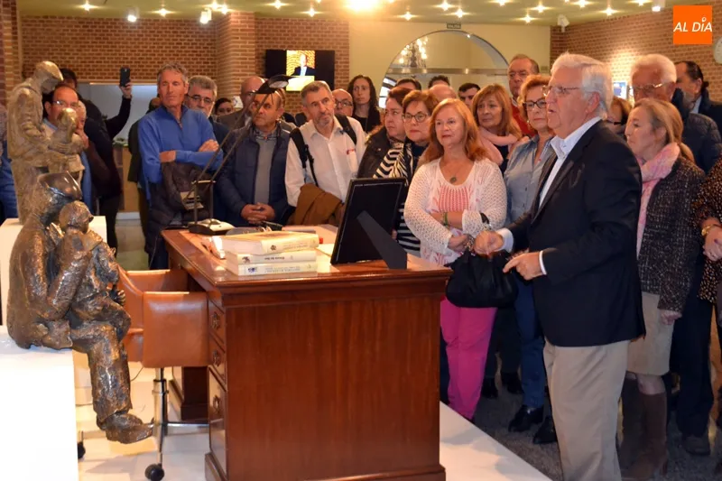Una muestra que se ha convertido en su inauguración en un emotivo homenaje al gran mecenas cultural peñarandino, y que contaba con la presencia de su viuda, Ofelia Grande, sus sobrinos, Antonio Basanta, mano derecha de German durante buena parte de su trayectoria personal y profesional además de ser el artífice de la exposición, y numerosos peñarandinos que conocieron la figura y la persona de German Sánchez Ruipérez, además de escolares de los centros educativos de la ciudad.