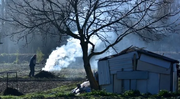 Ya Virgilio hablaba en sus "Geórgicas" de las hogueras campesinas de los rastrojos del cereal, como beneficiosas. Aquí este hombre, en su pequeño huerto, amontona los restos del sembrado, tras recoger los frutos, para que ardan.