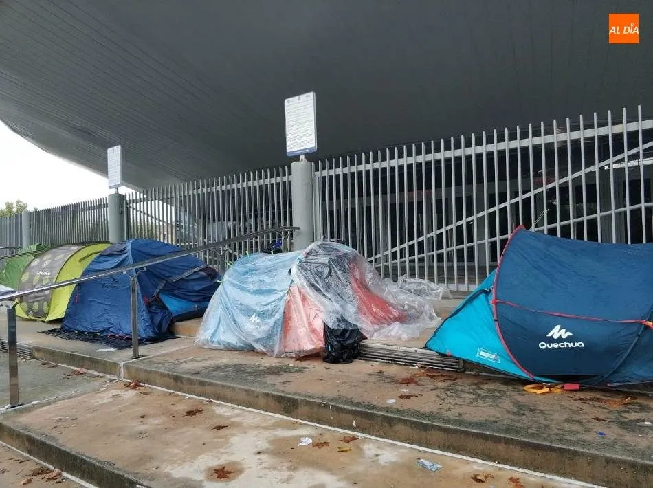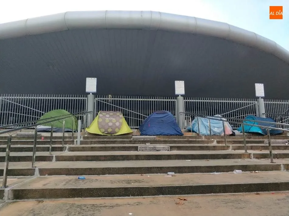 Melendi llega este sábado a Salamanca y algunos de sus seguidores ya están cogiendo sitio a la puerta del Multiusos Sánchez Paraíso. En concreto, anoche se instalaban a la puerta del recinto con seis tiendas de campaña, en las que han dormido, a pesar del frío.