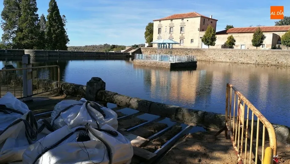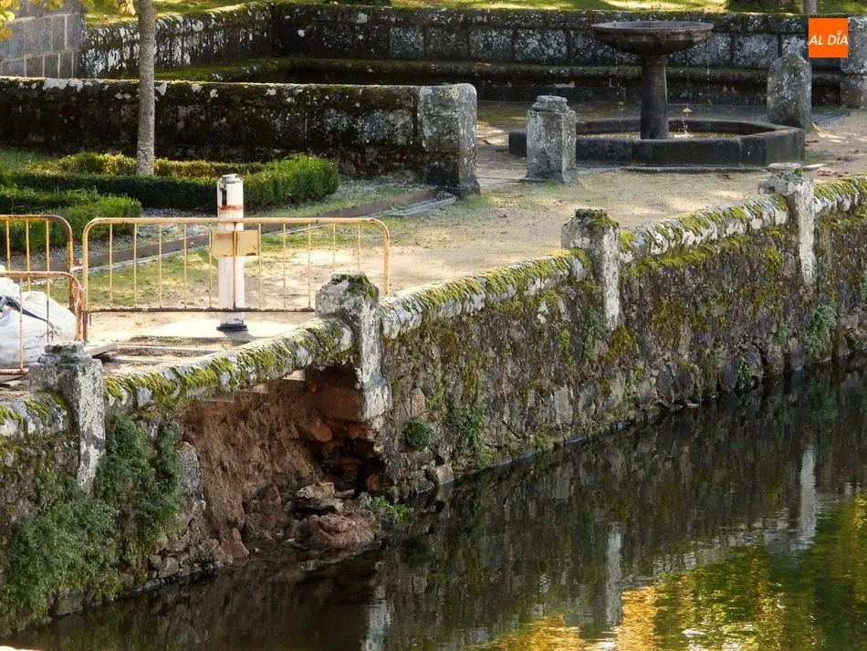 El muro perimetral del estanque se encuentra en la actualidad sujeto en la parte del derrumbe y con la zona acordonada a la espera de los técnicos de la Junta, pero la villa se mantiene abierta a las visitas