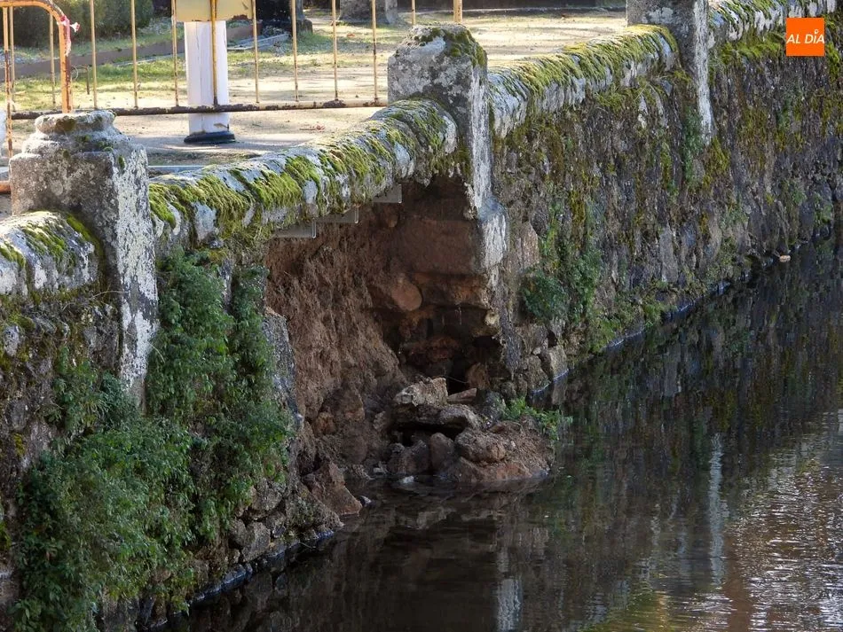 El pasado miércoles se ha producido en El Bosque de Béjar la caída de parte de uno de los muros perimetrales del estanque, parece ser que la incidencia viene producida por un exceso de agua acumulada en el terreno circundante, debido a las intensas lluvias de ese día y los anteriores, sin embargo, no pasa desapercibido, para cualquiera que pasee por allí, que el terreno está bastante elevado en esa zona, es decir rellenado con tierra, al igual que en la parte del pretil de la bajada de la Fuente de la Sábana, lo que sin duda está provocando un fuerte empuje sobre los muros del estanque y sobrecargando la estructura.