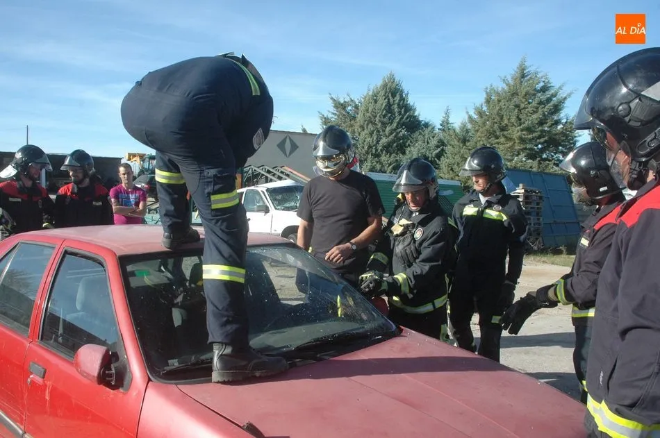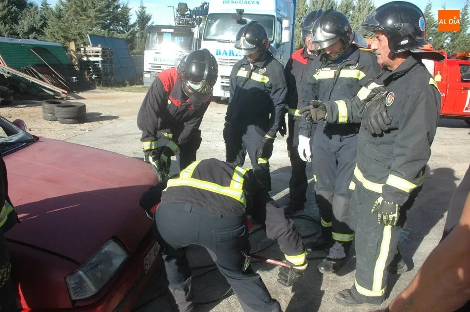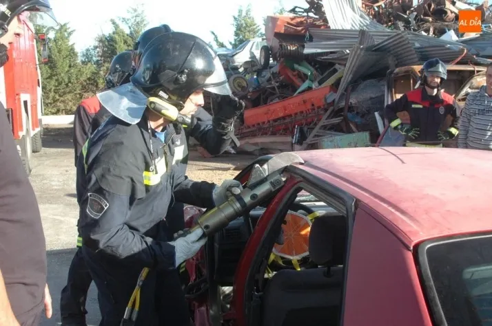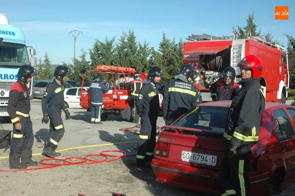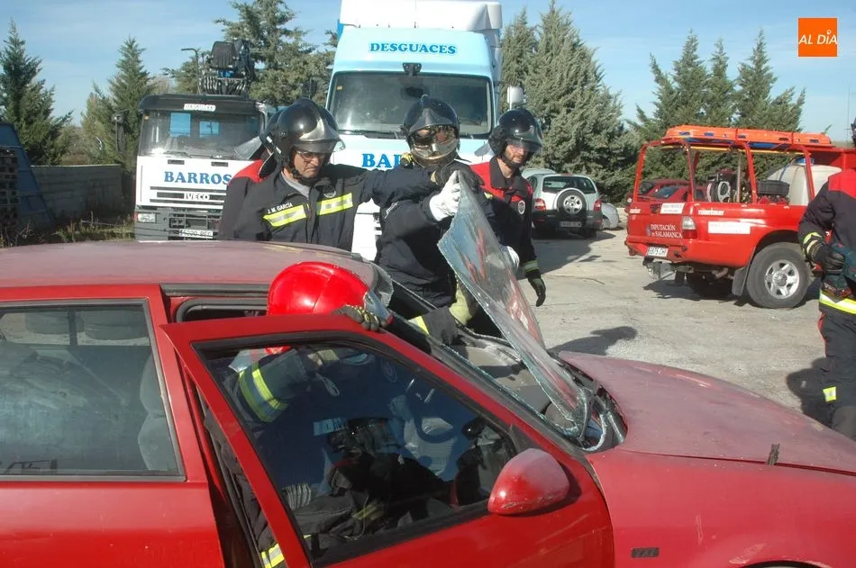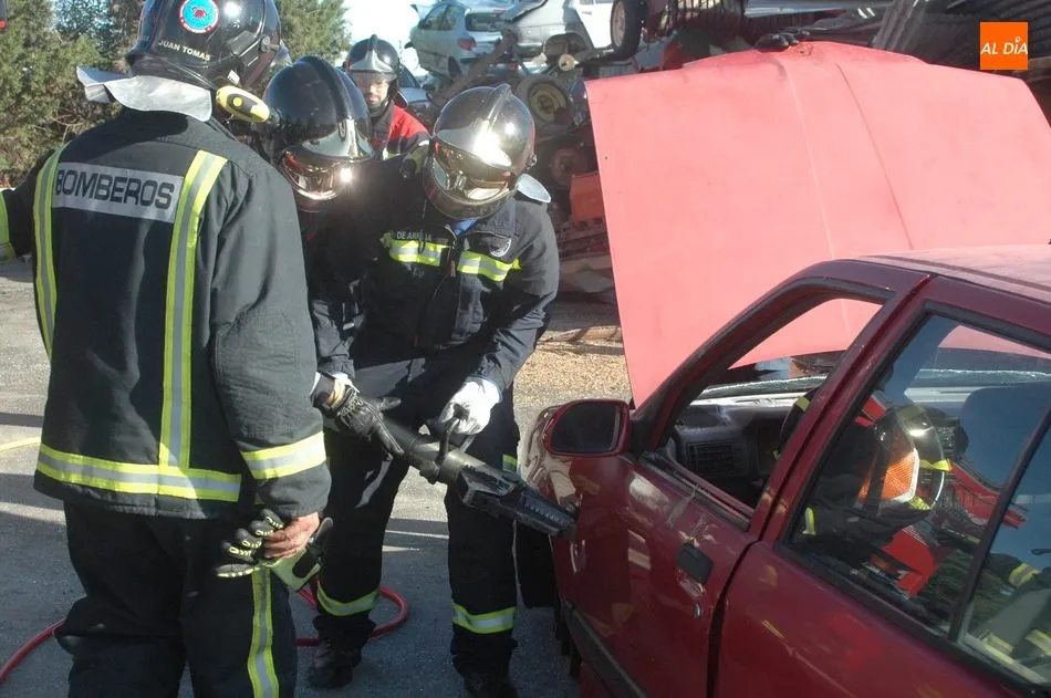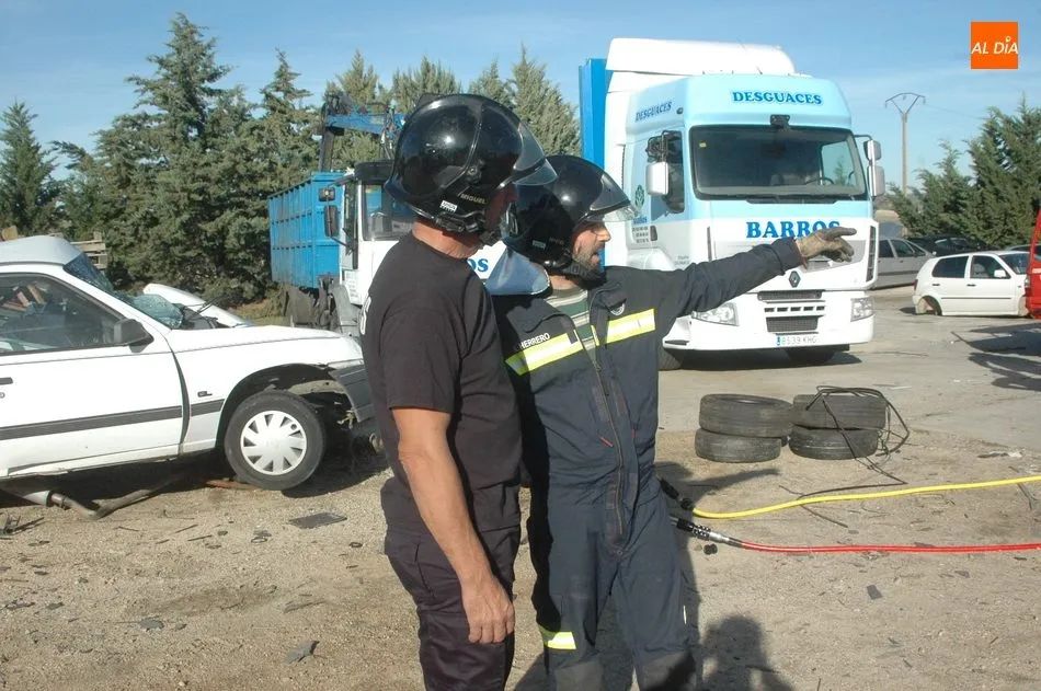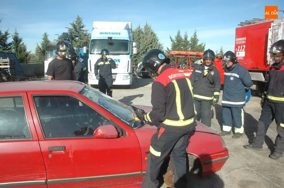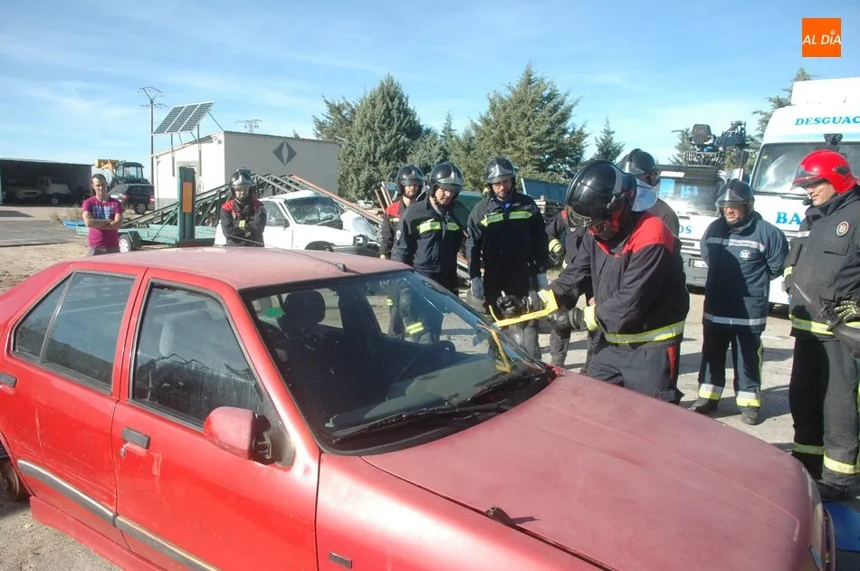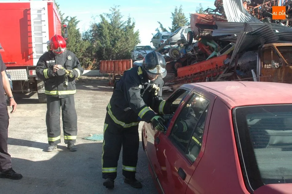 Los integrantes del Parque de Bomberos de Vitigudino realizaron este sábado una serie de prácticas para el rescate de personas en vehículos tras sufrir un accidente, ejercicios que se desarrollaron en las instalaciones de Desguaces Barros.