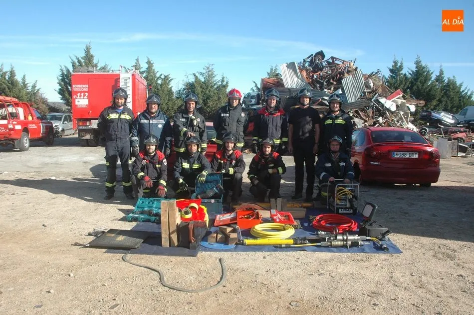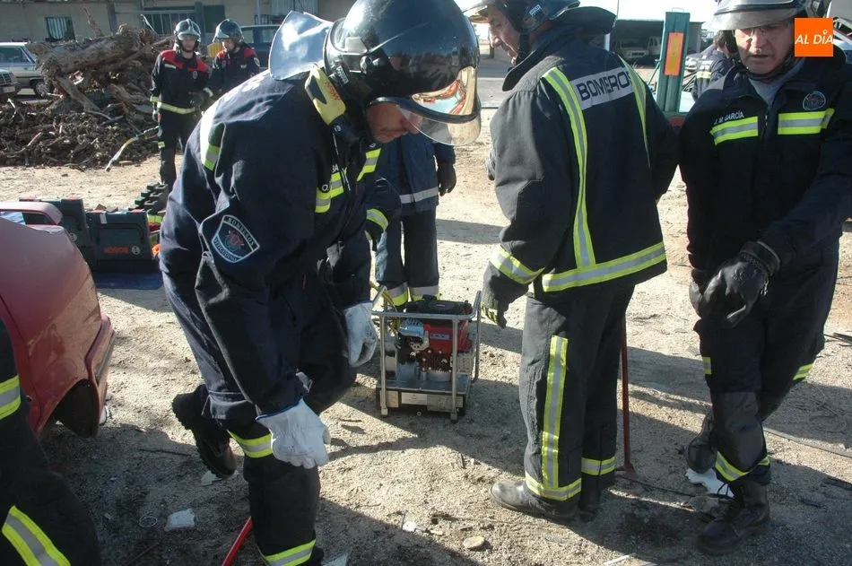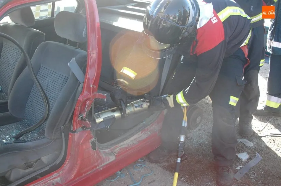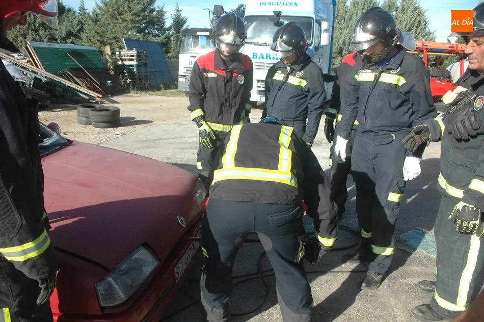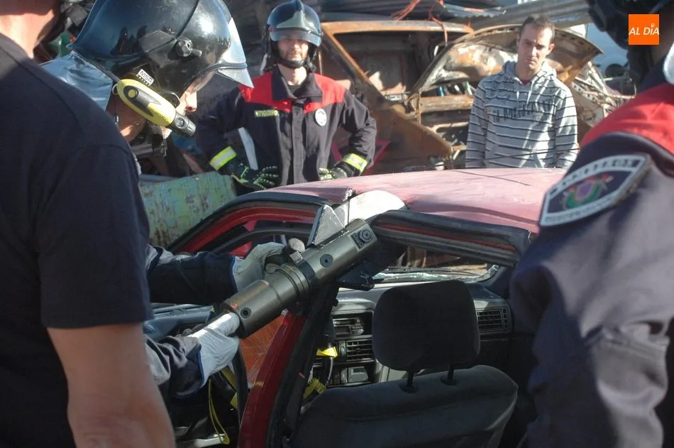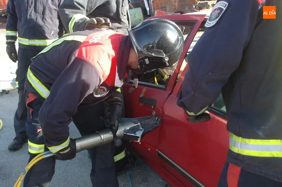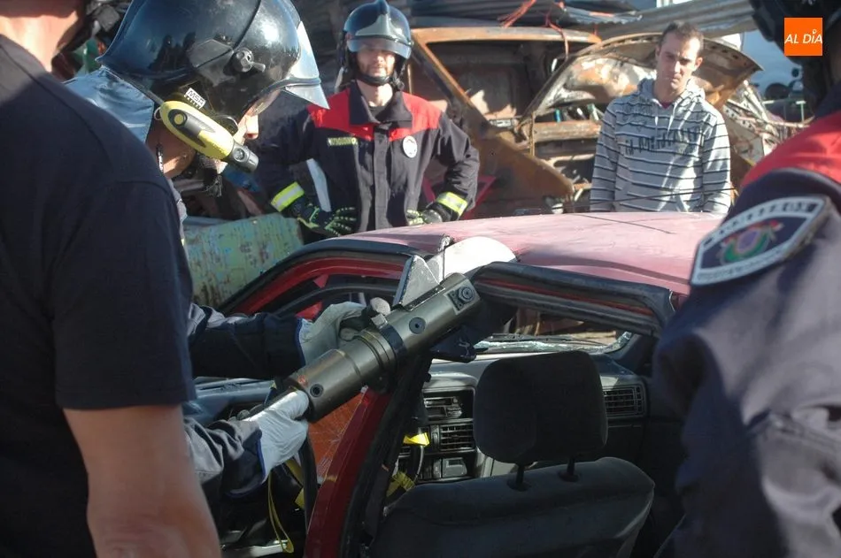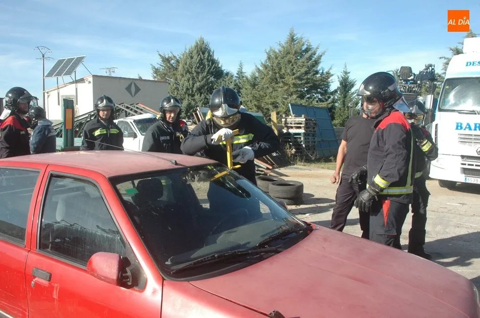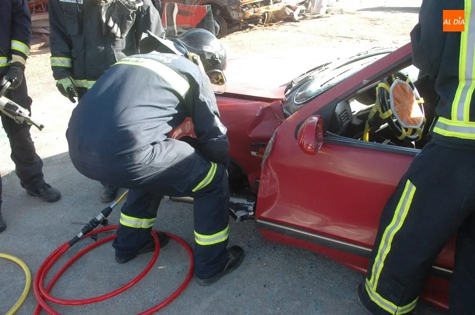 Los integrantes del Parque de Bomberos de Vitigudino realizaron este sábado una serie de prácticas para el rescate de personas en vehículos tras sufrir un accidente, ejercicios que se desarrollaron en las instalaciones de Desguaces Barros.