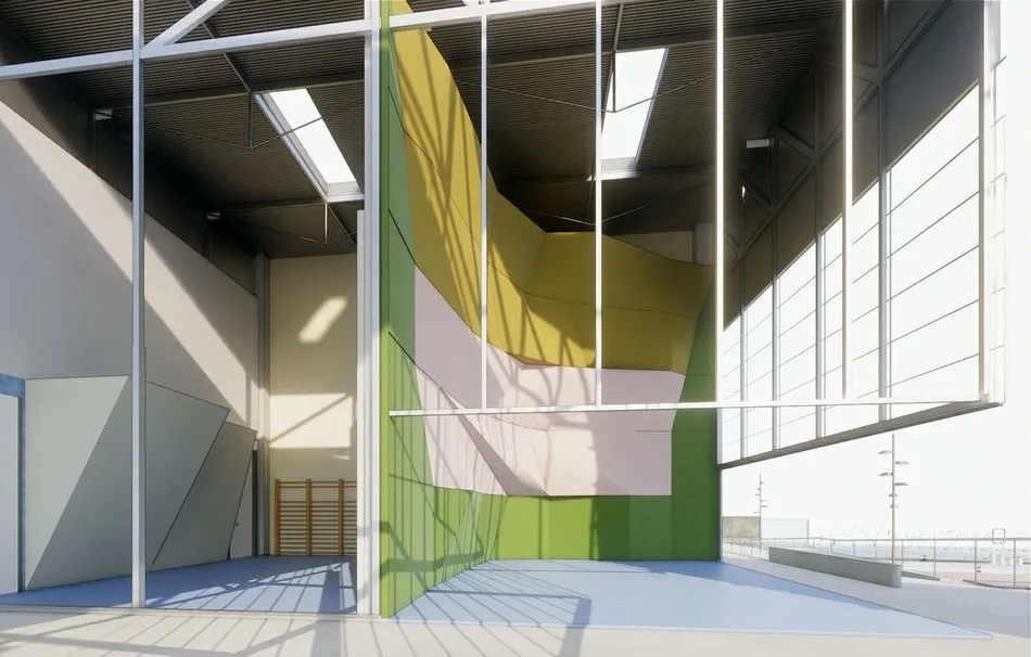 Incluirá un módulo anexo al pabellón de casi 700 metros cuadrados para la práctica de deportes en salas polivalentes como esgrima, tenis de mesa o tiro con arco. Del mismo modo, se procederá al traslado del rocódromo existente en el graderío a una zona cerrada del nuevo módulo, que se completará con otra cubierta pero exterior, y un nuevo rocódromo de velocidad que, formalmente, se constituye como un hito visual de la ciudad deportiva.