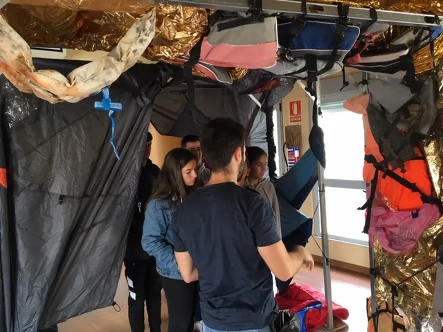 Se trata de una exposición y una instalación artística repartida por dos salas, que cuenta incluso con chalecos recogidos en playas de Grecia