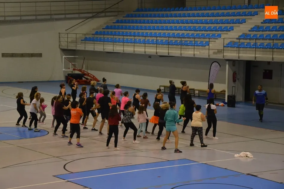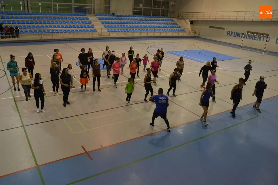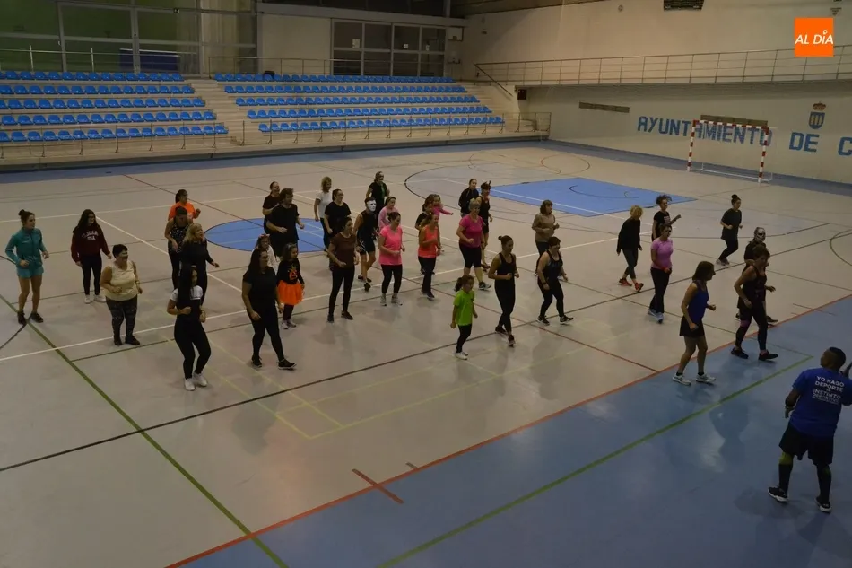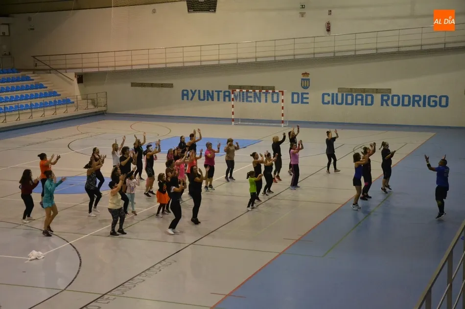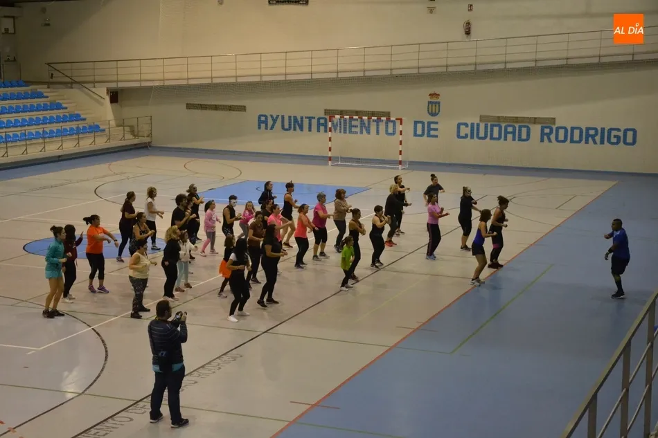 El Pabellón Eladio Jiménez de Ciudad Rodrigo fue escenario en el tramo final de la tarde del miércoles de una masterclass gratuita de zumba promovida por Instinto Deportivo, la empresa gestora del vecino Centro Acuático y Deportivo.