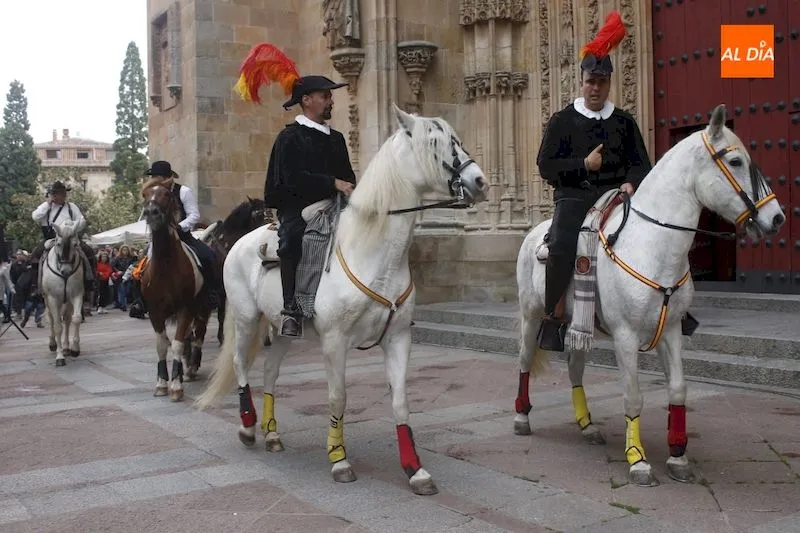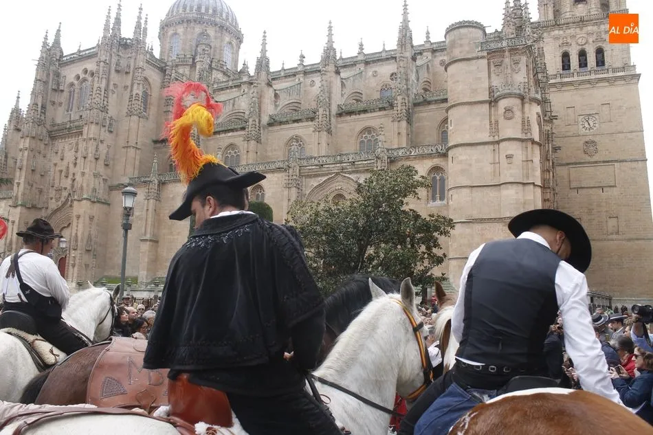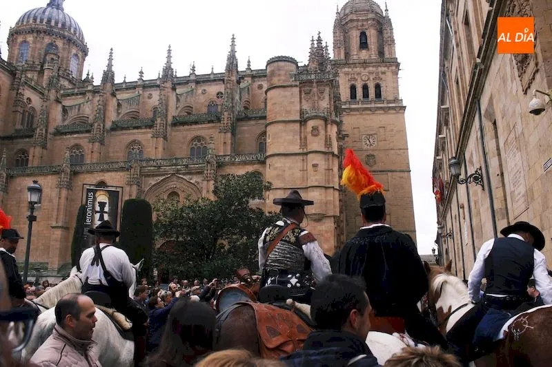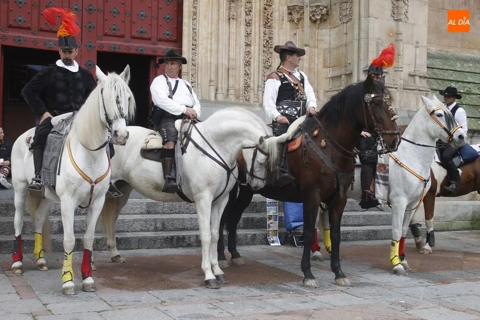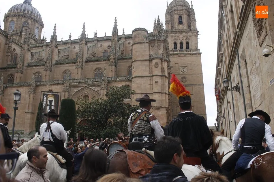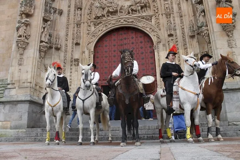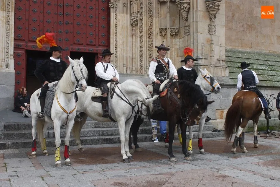 Así la comitiva se acercó hasta la Plaza del Corrillo, donde se reunieron con otro grupo de folcloristas salmantinos que previamente habían salido desde la Plaza Mayor.