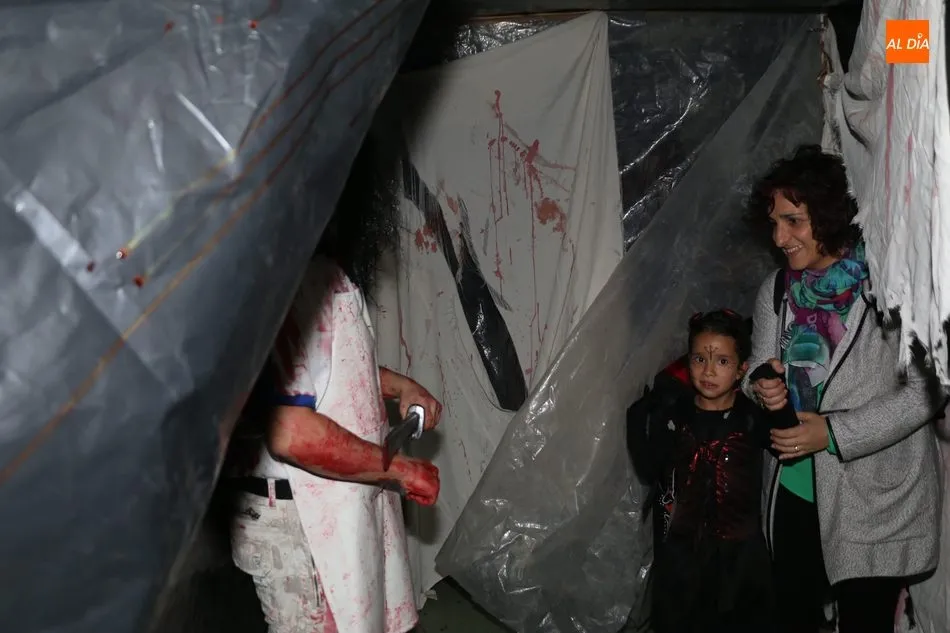 Decenas de personas de todas las edades se acercaron hasta la plaza del Mercado para asistir al Túnel del Terror, todo un espectáculo, y al mismo tiempo aportar su granito de arena a favor de los enfermos de ELA, incluso algunos realizaron dos y hasta tres pases. Por las razones expuestas, merecía la pena.