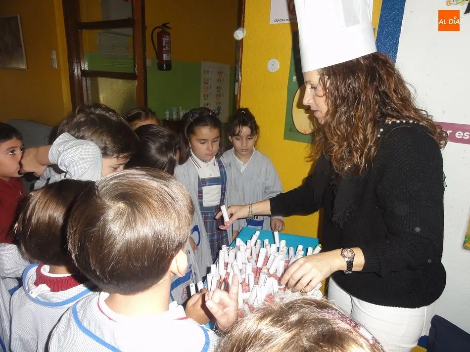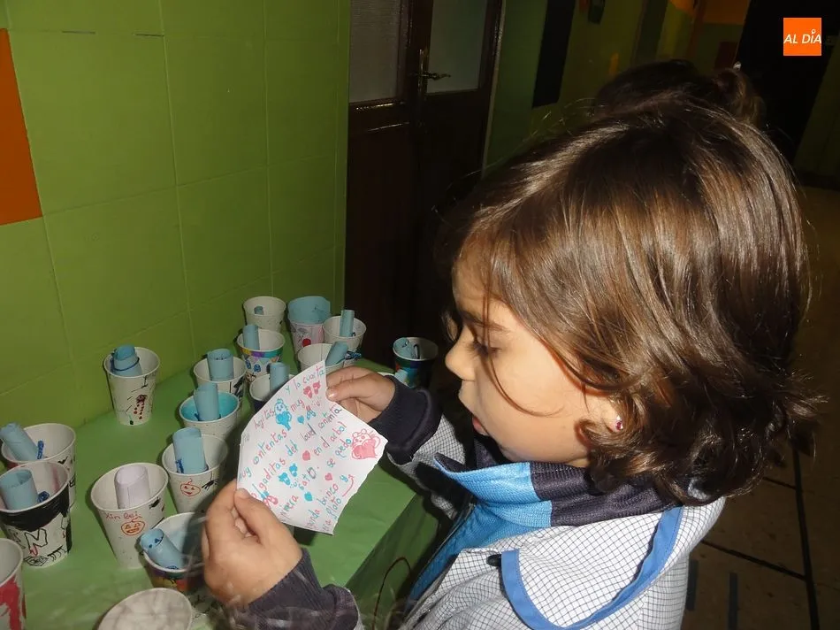 Los alumnos de Primaria decoraron vasos y escribieron una pequeña poesía (inventada, copiada, versos o estrofas de algún poema trabajado?) y luego los vasos se los intercambiaron entre ellos para disfrutar de que sorbito/poesía les había correspondido a cada uno. Por otro lado, los profesores entregaban a los profesores un pincho, a modo de canapé, que llevaba un refrán, un chiste, un trabalenguas o una adivinanza, en inglés o en castellano.