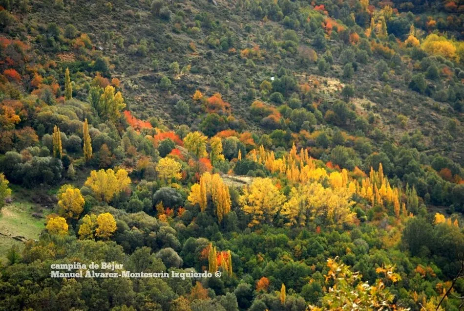 El otoño va desplegando sus colores en la campiña bejarana, los rojos, verdes, amarillos y ocres se mezclan en una paleta para despertar los sentidos. Los amantes del senderismo disfrutarán estos días de la magia de una estación del año en la que la naturaleza se despliega exuberante y ofrece sus mejores frutos en los montes y bosques de Béjar. Los viajeros de otoño están de enhorabuena estos días en los que desde cualquier punto de la ciudad se pueden divisar los paisajes que las fotografías de Manuel Álvarez-Monteserín regalan la belleza a nuestros lectores.