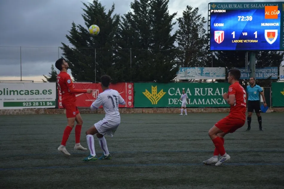El Santa Marta de Tercera División logró esta tarde en el Alfonso San Casto sumar un punto frente al filial del Numancia tras empatar a uno en el partido (1-1). El conjunto soriano se adelantó en el marcador en la primera mitad gracias a un tanto de Adri de volea que se colaba por la escuadra.
