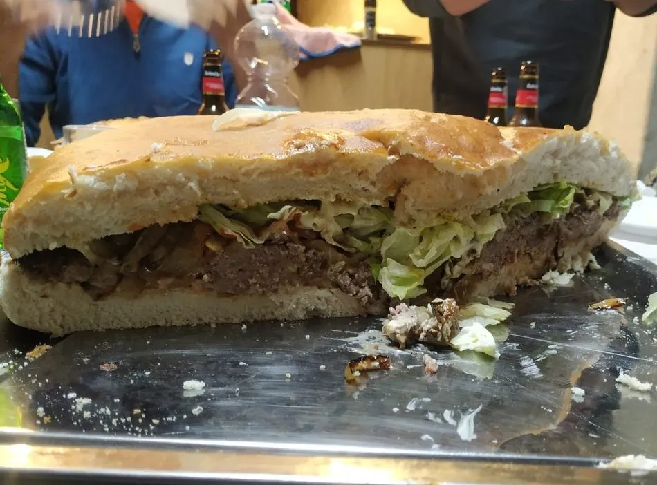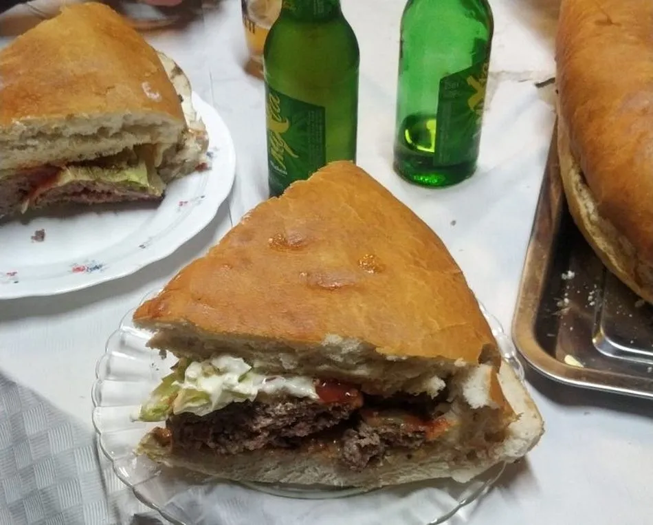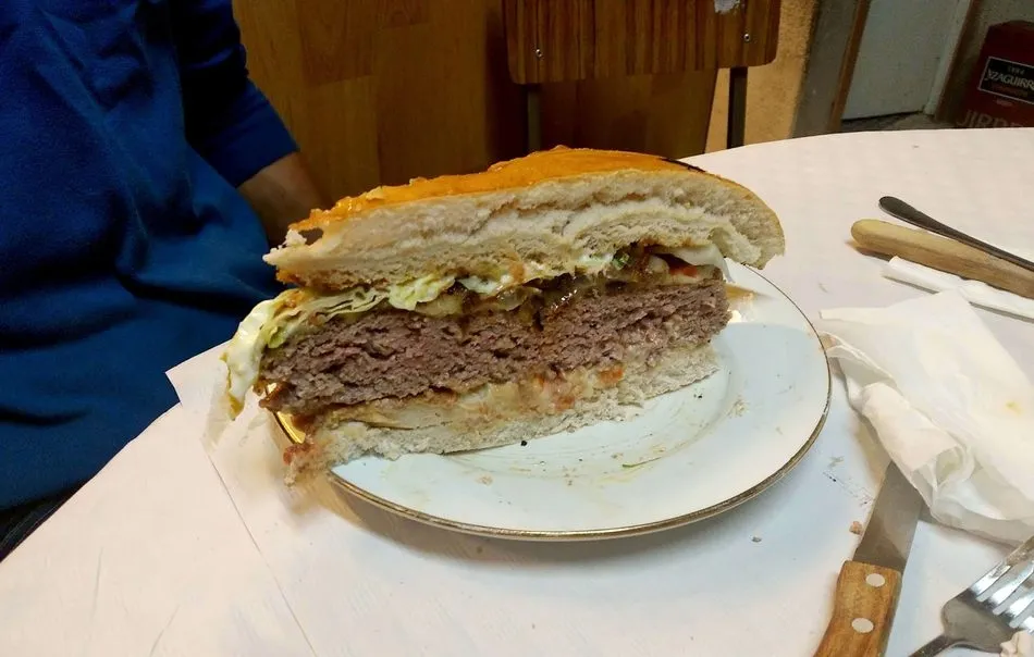 En Guadramiro demostraban la pasada noche que saben celebrar la ?Noche de los muertos?, y lo hicieron ni más ni menos que con una hamburguesa de tres kilos, en la que no faltó el queso en lonchas, su cebolla, lechuga, mayonesa, y hasta el kétchup y la mostaza. Eso sí, algunos hubieran echado en falta unas lonchas de bacón. Lo más difícil, además de comérsela sin cubiertos, fue mantener de forma compacta un diámetro de 30 centímetros de carne por cuatro de grosor. La peña La Panera demostró que las hamburguesas más grandes se hacen en Iruelos por las noches.