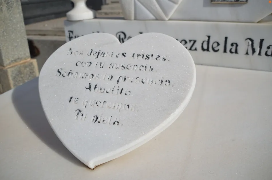 Palabras grabadas en las lápidas que hablan de humidad y sencillez - ?Yo no pido más que ser un buen recuerdo?-, de perseverancia y fidelidad -como el escueto ?Te espero?-, y en ocasiones también de aquello que quedó pendiente de decir. Citas que hablan de ese sentimiento que mueve el mundo: ?La edad no protege del amor. Pero el amor protege de la edad? (Jeanne Moreau) o ?Alguien como tú? es difícil de encontrar, fácil de quererer e imposible de olvidar?. Mensajes en francés, ?Tu es notre pensé de chaquejour? (eres nuestro pensamiento cada día); y otros más escuetos, ?Te espero?.