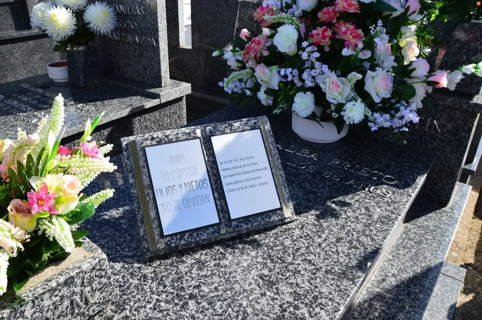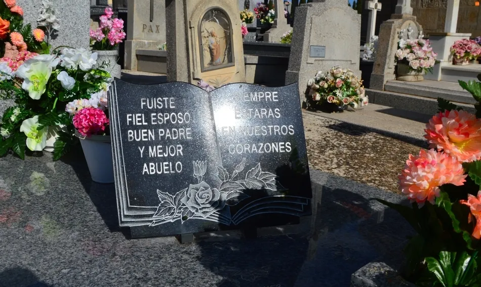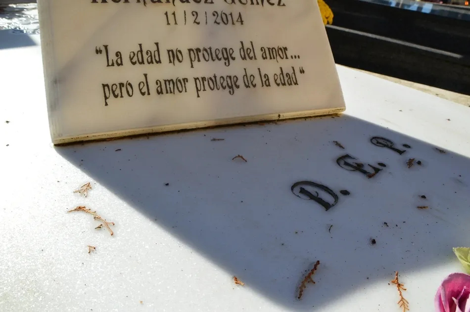 El cariño de esposos o esposas, padres, hijos o hermanos es el mensaje más común en las dedicatorias -?Quererte ha sido fácil, olvidarte es imposible? o ?Luis, tus primos de Francia no te olvidarán?-, pero también encontramos otras frases y mensajes más curiosos en el camposanto salmantino, incluso un aviso para los ?amigos de lo ajeno?, en concreto para los avispados que se dedican a robar las flores de las sepulturas. Así reza el aviso sobre la lápida: ?Tengo una cámara oculta vigilando mi sepultura. Estoy harto de que robe las flores de mis seres queridos. En cuanto le coja a usted llevaré las imágenes a la policía y procederé a la denuncia hacia usted por robo?. .jpg)