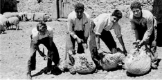 a y los agarradores, personas dedicadas a atar las patas, les llevaban las ovejas para quitarles la lana y luego liberarlas.