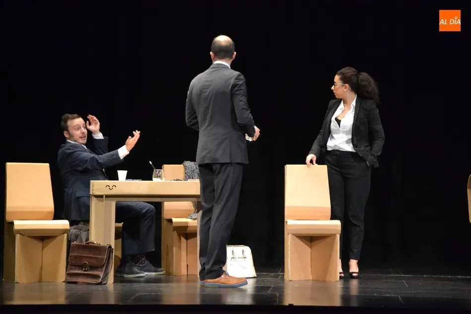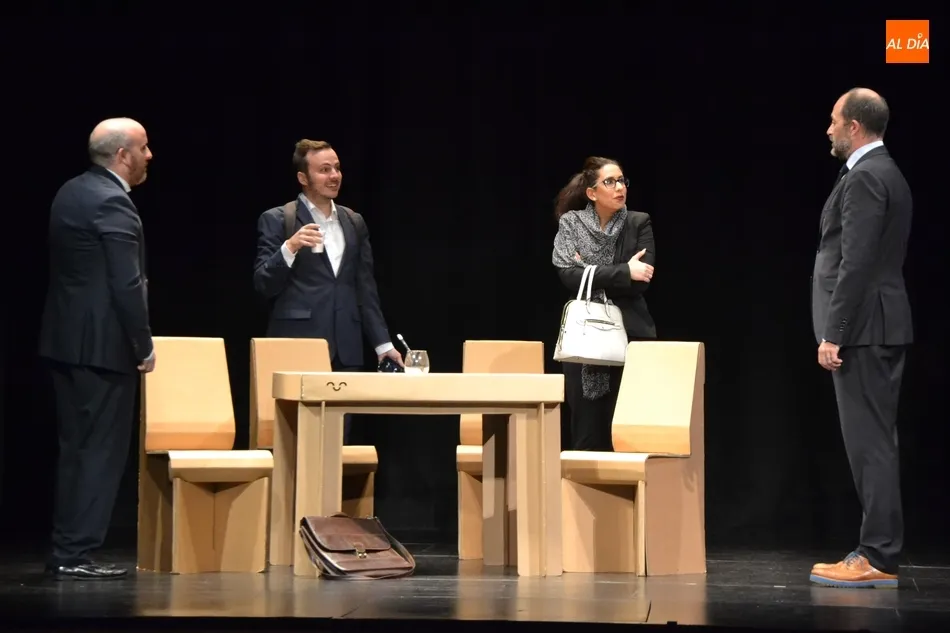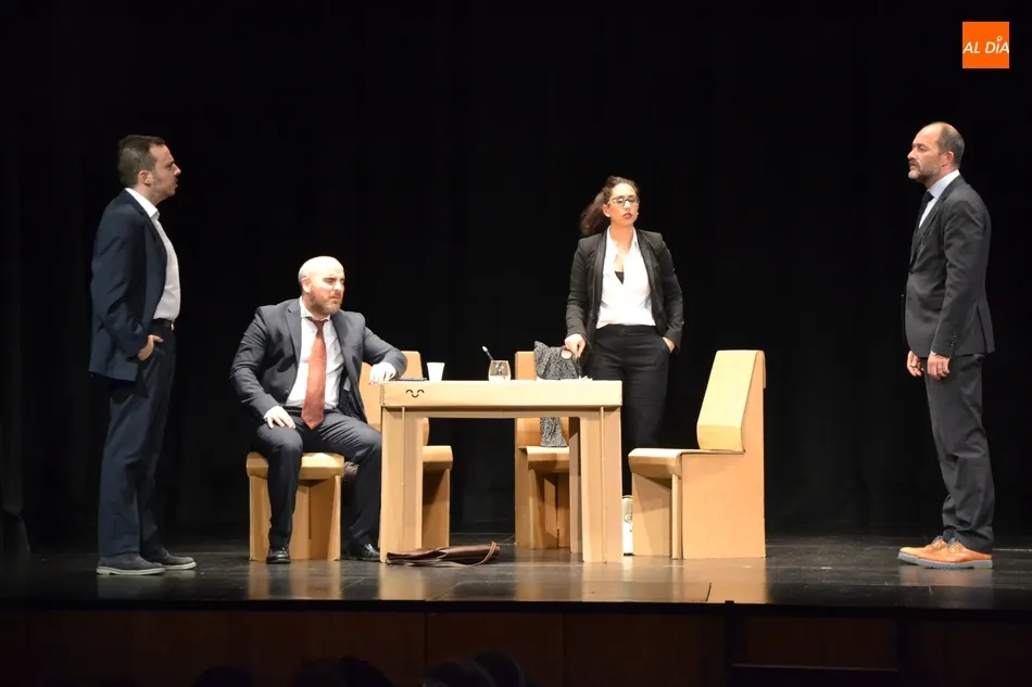 Esta última cita antes del parón corrió a cargo de la compañía Saltantes Teatro, que en colaboración con el Centro de Recursos Escénicos de Laboral Ciudad de la Cultura y la Fundación Municipal de Cultura de Gijón, y a través del Programa Platea del Instituto Nacional de Artes Escénicas y de la Música (INAEM), ofrecieron al público mirobrigense el montaje El Método Grönholm.