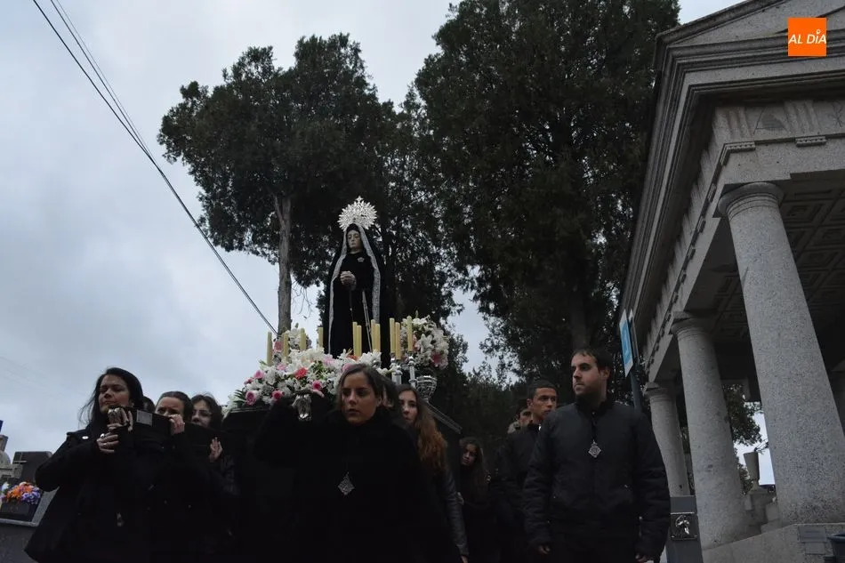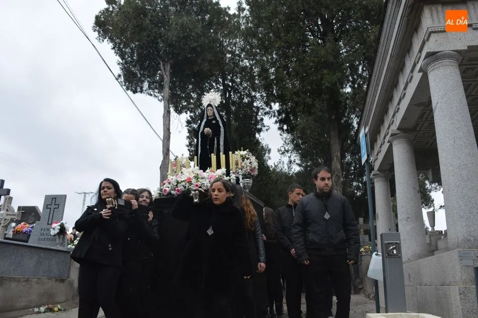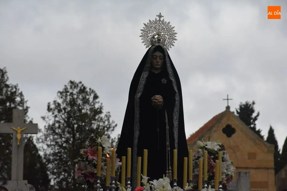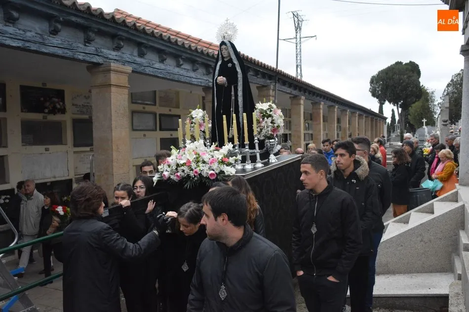 La Hermandad de Nuestra Señora de la Soledad ha celebrado hoy domingo una Misa de Difuntos y una procesión con la imagen antigua de Nuestra Señora de la Soledad en el cementerio de Salamanca. Ambos actos son habituales en estas fechas, con motivo de la festividad de Todos los Santos.