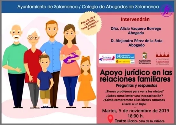 El Ayuntamiento y el Colegio de Abogados de Salamanca invitan a las personas mayores de la ciudad a participar en una mesa-coloquio, que tendrá lugar este martes, día 5, a las 18.00 horas, en la ?Sala de la Palabra? del Teatro Liceo, sobre derecho de familia.