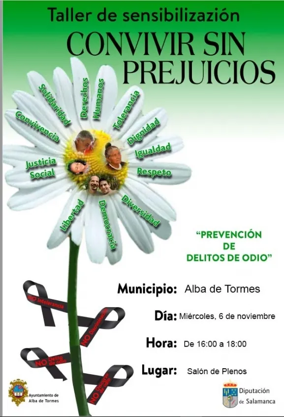 El Ayuntamiento de Alba de Tormes ha organizado para este próximo miércoles un taller de sensibilización titulado ?Convivir sin prejuicios?. Tendrá lugar de 16:00 a 18:00 horas en el Salón de Plenos del Ayuntamiento de Alba de Tormes.