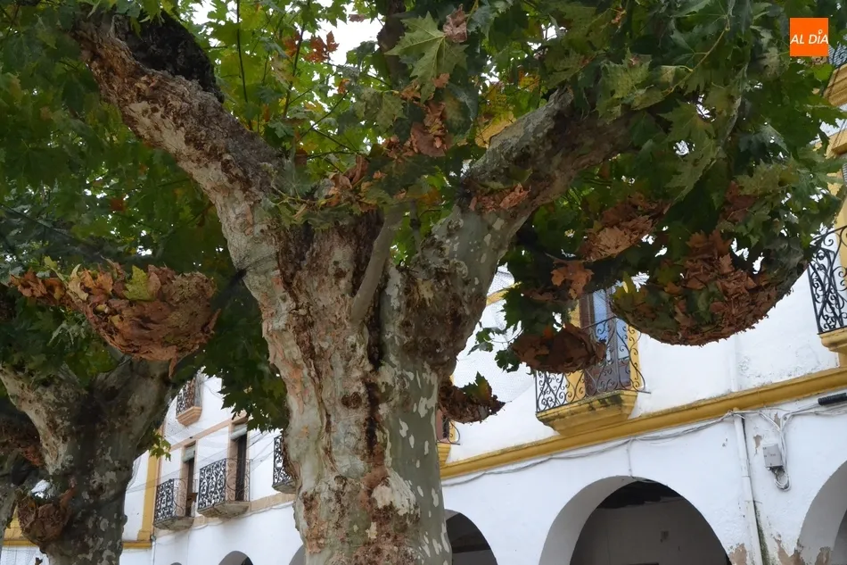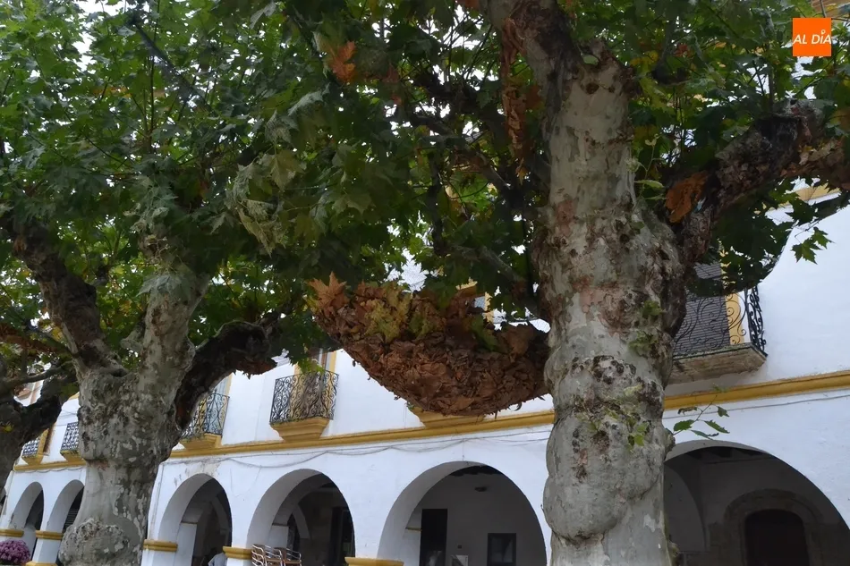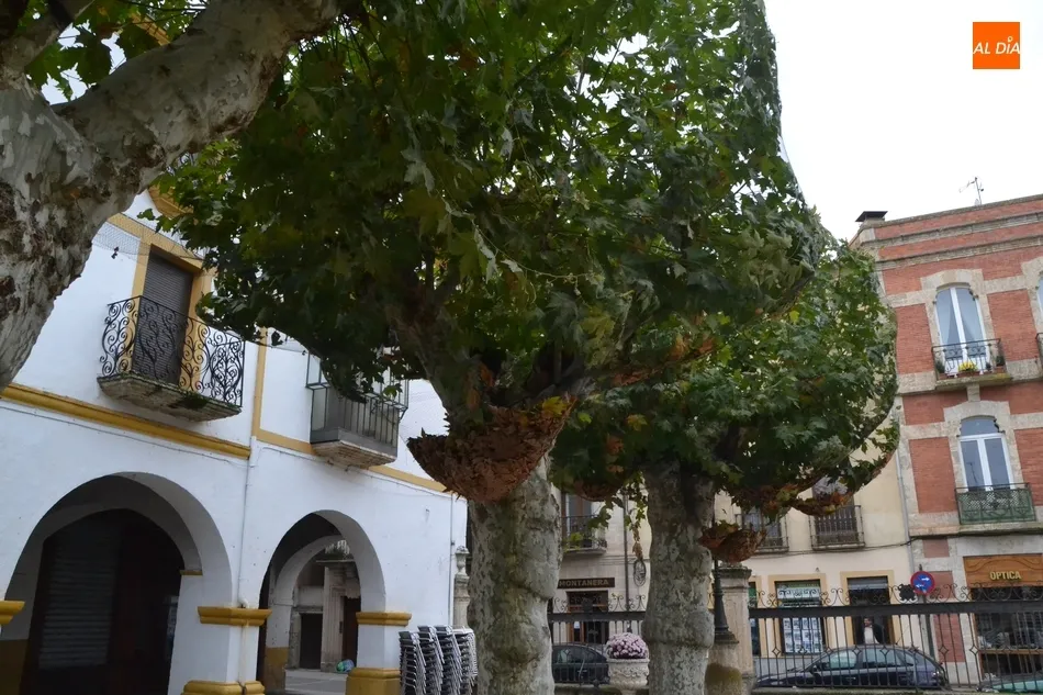 A diferencia de lo que venía siendo tradicional, este año no se han podado ?al menos todavía- los árboles de la céntrica Plazuela del Buen Alcalde de Ciudad Rodrigo, cuya poda solía ?simbolizar? el inicio del otoño en el centro histórico. Sin embargo, hay un lateral de la Plazuela cuyo suelo no se está cubriendo de hojas pese a ser árboles de hoja caduca.