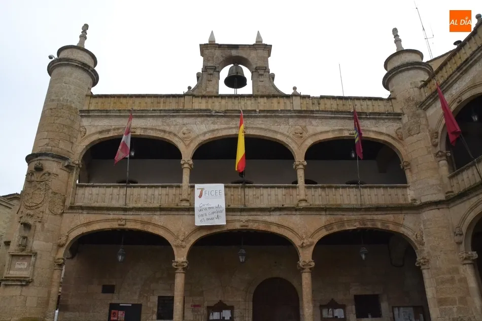 Este FICEE 2019 ya se está dejando sentir en la calle desde hace unos días con la colocación en la Plaza Mayor, en la balconada de la Casa Consistorial, de la pancarta que aparece en las imágenes, que luce la leyenda Cine, una mirada para cambiar el mundo. Se puede encontrar toda la información sobre el Festival 2019 en esta información: https://salamancartvaldia.es/not/222465/desvelada-programacion-9o-ficee-incluye-pelicula-participa-dani/.