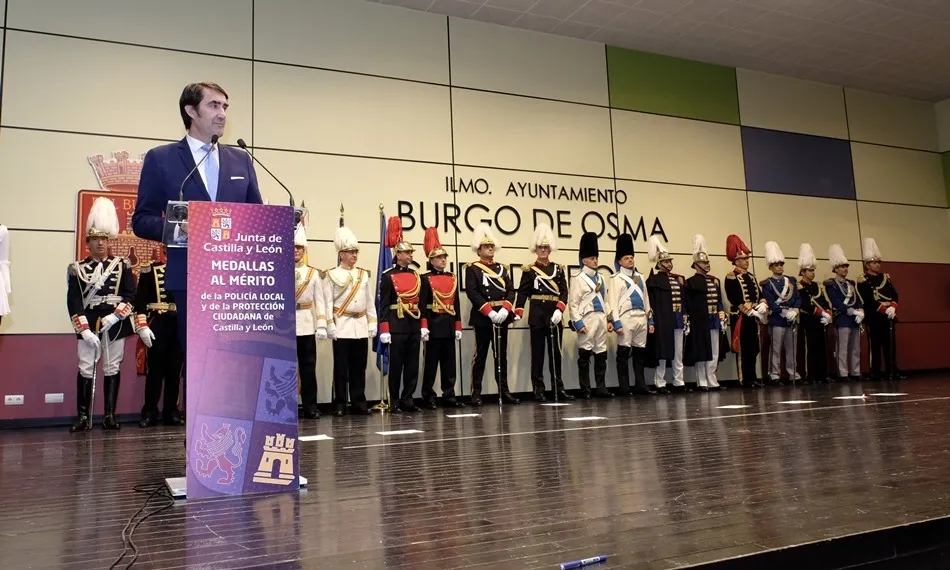La Consejería de Fomento y Medio Ambiente ha entregado este miércoles, en El Burgo de Osma (Soria) las Medallas al Mérito de Protección Ciudadana y de la Policía Local de Castilla y León y las Menciones Honoríficas la labor de los cuerpos de Policía Local. Entre los galardonados están seis policías locales de Salamanca y cuatro de Béjar: