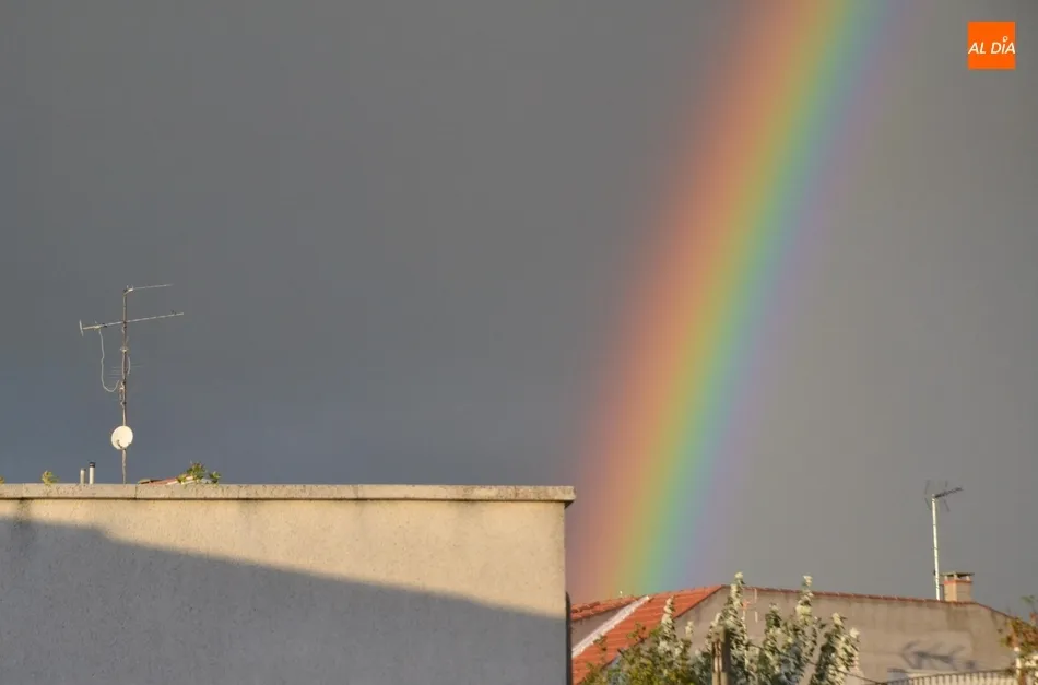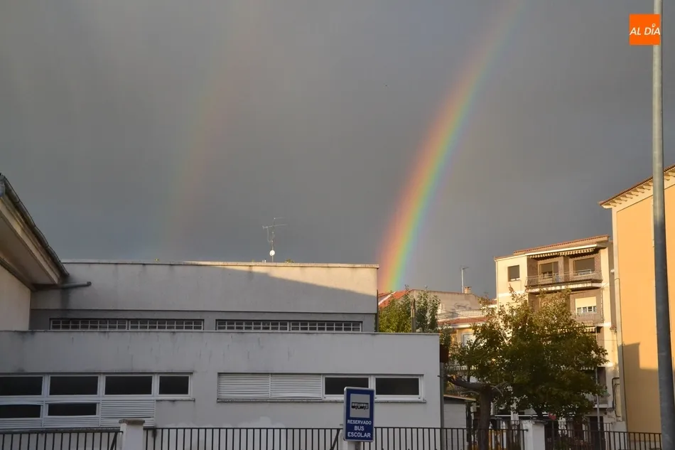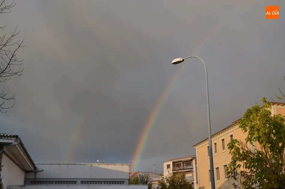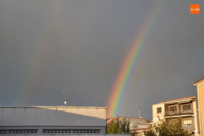 Pese a que en el núcleo urbano de Ciudad Rodrigo no llegó a llover, el cielo brindó a los mirobrigenses dos arcoíris simultáneos