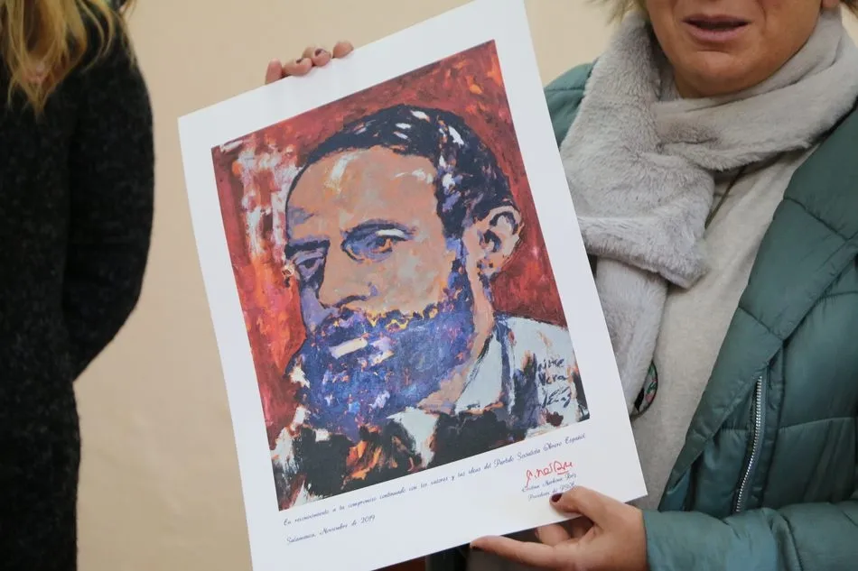 Cada uno de ellos, además de Víctor Moro, hermano del que fuera alcalde de El Cubo de Don Sancho durante varias legislaturas, Pedro Moro, recibió una lámina con la imagen del presidente fundador del PSOE, Pablo Iglesias, realizada por el pintor Miguel Elías, en un acto al que asistía la candidata socialista al Senado, Elena Diego; el portavoz del PSOE en la Diputación, Fernando Rubio, y la alcaldesa de Ledesma, Patricia Martín.