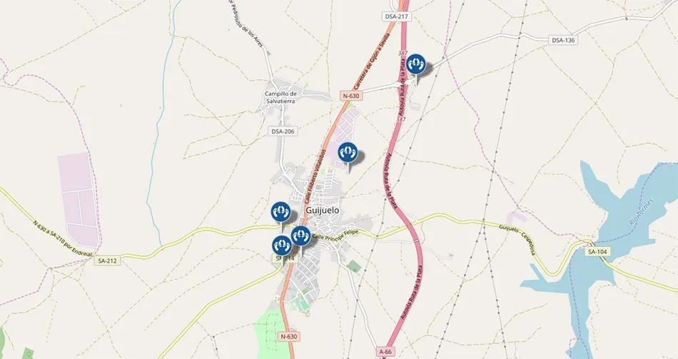 En el caso de Guijuelo, se contabilizan cinco lugares distintos, adecuados para un ?alivio lúdico?. El primero de ellos es el camino de la villa, que un usuario describe como "lugar cómodo y apropiado para la noche". Otro de los lugares destacados es el antiguo depósito de agua, ubicado junto al camino que lleva hasta el conocido monte de Tonda, "lugar trankilo al aire libre de campo Perfecto para la noxe y en especial en coxe NO recomendadeo en horario diurno de diario hay dos fabricas al lado" (sic). Los usuarios recomiendan también la urbanización junto a la bajada de las piscinas, el párking del área de descanso de la cercana A-66 y el parque de La Dehesa.