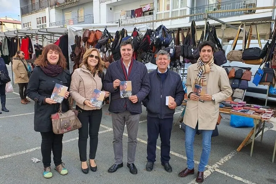 José Antonio Bermúdez de Castro y Gonzalo Robles, candidatos del Partido Popular al Congreso y al Senado por Salamanca, han estado en Béjar para protagonizar un acto de campaña junto a los Populares bejaranos y explicar sus propuestas a los ciudadanos en el mercadillo de ayer jueves.