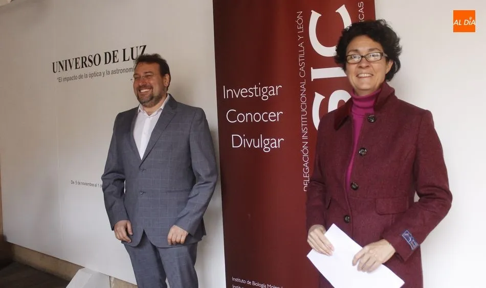La delegada institucional del CSIC en Castilla y León, Mar Siles, y el director del Instituto de Óptica ?Daza de Valdés? de Madrid, Juan Diego Ania Castañón, han inaugurado este lunes la exposición ?Un Universo de Luz?, que podrá visitarse durante todo este mes de noviembre en el Patio Alto de la Casa de las Conchas. La exposición se ha preparado con motivo de la Semana de la Ciencia, un evento de divulgación científica que se celebra en toda Europa.