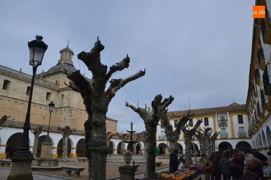 En la mañana del martes, continuaron las podas de árboles por parte de operarios del Ayuntamiento de Ciudad Rodrigo en el centro histórico, siendo turno para actuar en las Plazuelas del Conde y de San Salvador, a donde también se extenderá este año la iluminación.