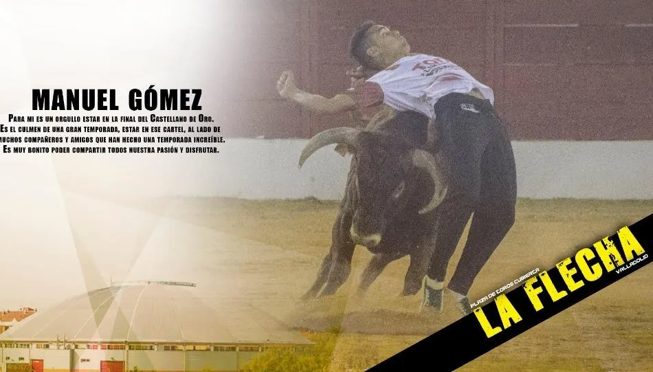 El joven mirobrigense Manuel Gómez será uno de los 15 protagonistas de la gran final del certamen de recortes ?Castellano de Oro? que se disputará el próximo sábado 16 de noviembre a partir de las 19.30 horas en la plaza de toros cubierta La Flecha de Arroyo de la Encomienda (Valladolid). Manuel Gómez estará en esa gran final tras ganarse el puesto en los meses precedentes en el certamen denominado ?Charro de Oro?, junto a Luis Antonio Martín ?Luisan? de Santa Marta de Tormes, e Iván González de Babilafuente.